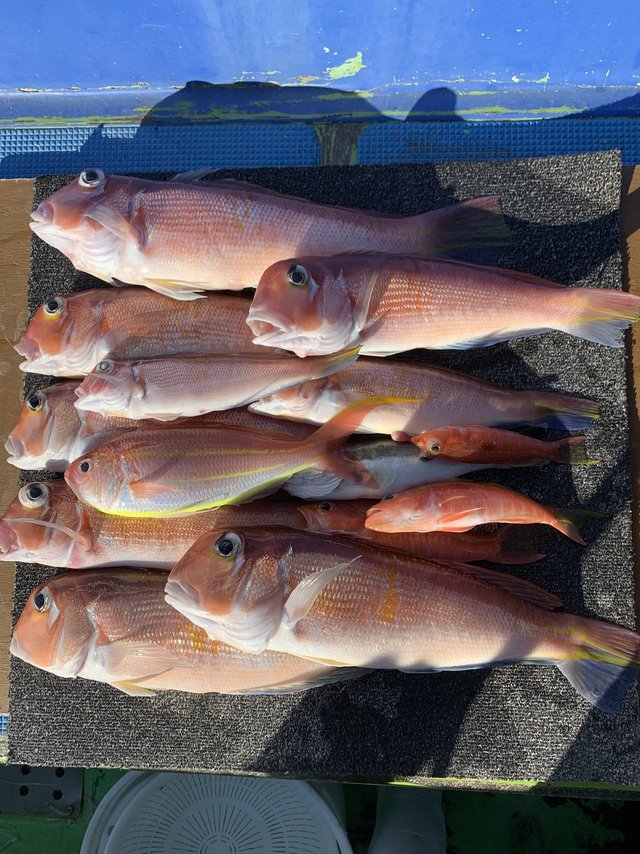 (アカアマダイ)22~47cm 2~7匹 イトヨリ カンパチ 「アマダイ船」今日は1日通して潮流れが順調に流れ、各ポイントでアマダイは顔を出してくれました。本日はありがとうございました。