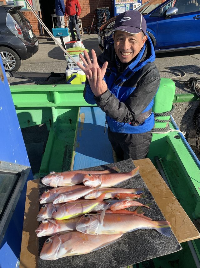 (アカアマダイ)30~43cm 0~7匹 イトヨリ カサゴ ハタ キダイ サバ カイワリ ワラサ 次いで山元さんが白甘ダイ混じりで6本、残念0の方が1名でした。白甘ダイは船中4本釣れてました。