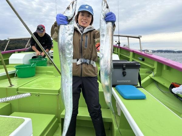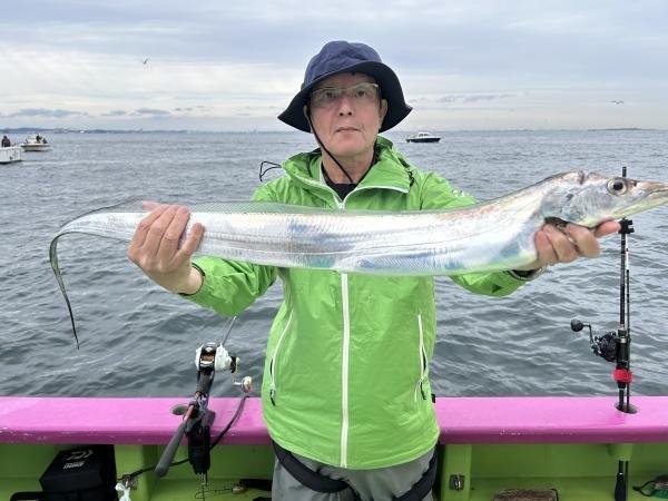 70~132cm 6~24匹 本日も、タチウオ船出船できました。 朝一、大津沖からスタートし 開始一投目より型が見れ 派手な食いはなかったですが 間が開きながらポツポツと見れ 中盤から走水沖にて プチ盛り上がりがあり ラスト一投でダブルヒットで上がって来たら 132センチと130センチと ラストにミラクルがありました! トップルアーで24本・二番手テンヤで19本 三番手テンヤで16本が2人でした。 たかし船長