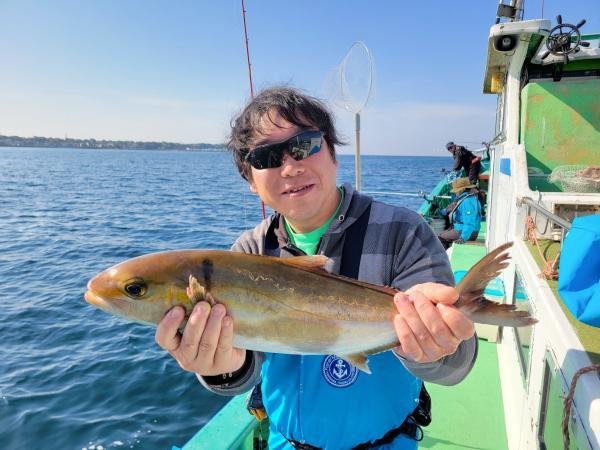 1.50kg 合計1匹 イナダ 1.30~1.80kg 0~1匹 ワラサ 3.00~3.30kg 0~1匹 カンパチ 3.30kg 合計1匹 マダイ 1.50kg 合計1匹 アジ 30~40cm 3~14匹 今日30日も、朝から「これ以上ないでしょ!」と言いたくなる快晴。 風は北の微風から、途中は“息してる?”と思うくらいのほとんど無風状態。 海はツルッツルのベタ凪で、船頭としては思わず「これは写真撮っとく海況だな」とニヤけるほどの絶好の釣り日和で出船する事が出来ました。 ただし、ここで一つ大事なお知らせ。 明日1日は天気こそ快晴で文句無しなのですが、肝心の風予報がアウト… 全船休船になりますので、釣行予定の方は日程の変更をお願い致します。 明後日は回復する予報ですから、ぜひリベンジしにお越しください。 アジ五目船、そしてマグロ・カツオ船でお待ちしています。 さて、今日のアジ五目船。 朝イチは落し込みからスタート。反応は相変わらず“そこにいるよ”と言わんばかりにしっかり出るんですが、潮が明るくなってしまったせいかベイトアジの気分が乗らない…。 付いても2匹、3匹と控えめで、どこか「今日はちょっと様子見で…」みたいな気のない付き方。 ところが、そんなベイトのテンションとは裏腹に、青物の反応はやる気満々。 しばらくするとイナダが顔を出し、続いてヒラメ、さらにマダイまで登場。 「ベイトさえ付けば何でも来るな、この流れ」と思わせる展開でした。 その後やや沖にポイント移動すると、今度はカンパチ、イナダ、カイワリが順にお出まし。 相変わらず青物反応はしっかり通っていましたから、あとは明日以降のベイトの気合いに期待ってところです。 (ベイト君、明後日は本気出してくれよ…) 後半戦は深場でデカアジ狙い。 ここ最近ようやく反応が出始めていて、今日も仕掛けを下ろすとすぐに“待ってました”の入れ食いモード突入。 中には一荷で連チャンという景気の良い方もいて、「はい、冬に向けて本調子出てきたね」という感じ。 さらにカンコまで一荷で上がったりして、これから冬場にかけてはクロムツ、カンコなど根魚系も本格的に楽しみな季節。 寒さは厳しくなりますが、釣り物はますます熱くなりますので、ぜひ遊びに来てください! ──というわけで、明後日、皆さまのお越しを心よりお待ちしております。