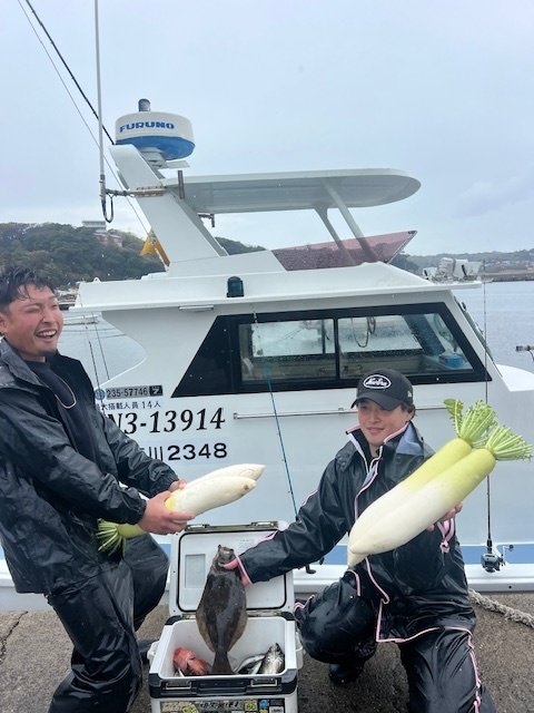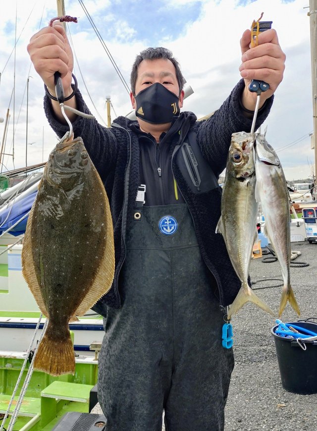 3.20kg ヒラマサ 4.00~4.00kg 0~1匹 ワラサ 3.00~4.40kg 0~4匹 ウッカリカサゴ アジ サバ 中潮、明日も中潮。いつもご覧いただきありがとうございます。 現在、大人気の泳がせ釣りでは・・・なんとヒラマサが釣れるようになってきました。 なかなかお目にかかれないと思っていましたけど剣崎沖を回遊中です。 連日、座布団ヒラメ本日も3.2kgをゲット。 ワラサ、絶好調3kg~4kgの良型ワラサを船中5本オーバーでゲット青物のパワフルな引きをこれでもかと堪能しました。 さらに今回は、活き餌のアジも絶好調お土産にできるほどたくさん釣れています。 今後も泳がせ釣りを予定しております。