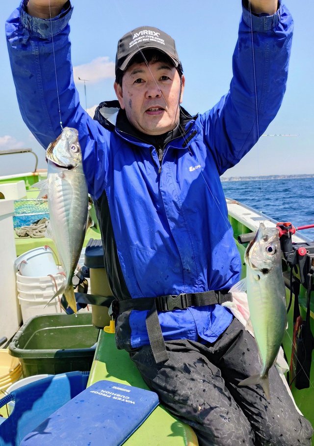アジ 20~40cm 10~40匹 サバ カサゴ 今日のアジは久里浜~観音沖を狙っていきました。潮は上げ潮から下げ潮で、下げ潮は若干速めに流れる時間もありました。上げ潮の時間はアジの活性低く、反応もあまりなく苦戦しました。下げ潮が効いてくると匙の活性も良くなり、それからはダブル交えポツポツつれました。型は中~大アジが多く小アジ混じりでした。今日のトップは三浦さんで40匹でした。
