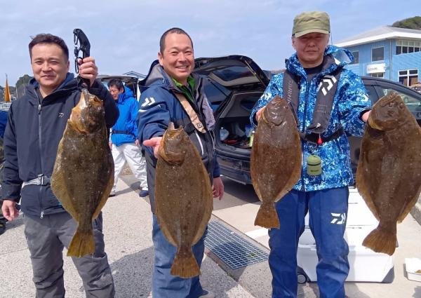 今日は泳がせ船で出船しました。 良型のヒラメ4kg2kgGETできて楽しめました❗️残念ながら数回バラシあり。 お土産には大アジ皆さん釣れました。 本日も暑い中ありがとうございました。