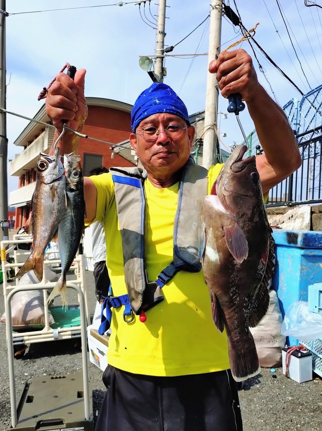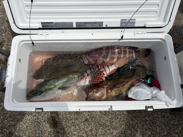 4.50~4.50kg 0~1匹 ワラサ 5.00~5.00kg 0~1匹 ウッカリカサゴ 2.00kg オニカサゴ 中潮、明日は小潮。 いつもご覧いただきありがとうございます。 【大人気。アジの泳がせ釣り】早朝は水深60-90mで20cm前後のアジを釣ってから、その後にアジの泳がせを狙っていきます。 本日は5kgワラサ、4.5kgヒラメ、2kgのウッカリカサゴ、オニカサゴの一荷釣りなどもありました。 他にも大物によってハリスが切れたり、ハズレたりもありました。まだまだヒットもあり、様々な魚種も釣れています。 8月後半戦も大物に期待できそうです。