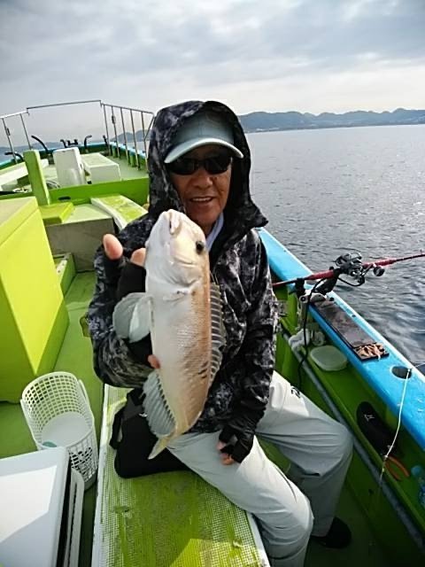 今日は風自体はそよそよだったのですが 大きなうねりがありました。 出船してすぐはいつもより生体反応が 少なく感じました。 ベイト反応もあるのですが 先週と比べると少なくなった気がします。 9時前になるとアタリも増えてきて アカハタ、カサゴなどが顔を出すように。 すると仲間のファイトシーンを撮影するために 置き竿にしてた竿にガツンッッ!!!!!!とヒット。 引きも良く途中走られたりしましたが 上手なやり取りで海面に現れたのは真鯛!!!!!! たまりません。 その後は少し深場を探り 11時を過ぎるとアタリが減ってきて サバフグが出てくるように。 少しずつポイントを変えてみたのですが イマイチ……。 そして私はあまり探らないポイントなのですが 大船長はこの辺で当てて来るんだよな〜。 なんて考えながら半ばヤケクソで 選んだポイントが大当たり。 固まったベイトも入っておりビッグヒット。 横走りしたので青物?と思いきや なんとシーバス!!!!!! こんな所に居たの!?!?!? すると間髪入れずにまたもビッグヒット! 竿の曲がりも申し分なく巻き上げてくると……。 会いたかった茶色のヤツ!!!!!! キタキタキターッッ!!!!!! 船内が一気に戦闘モード。 すると船酔いでダウンしていた。 船釣り初めてのお兄さんの竿にもビッグヒット! 最初は根掛かりかと思うほどの竿のしなりでしたが 周りからの声援に背中を押され無我夢中で巻いてくると え、激アツ展開!?!?!? またも平たい茶色のヤツ!!!!!! 人生初釣り、初ヒラメ!!!!!! このドキドキ感が泳がせ釣りの醍醐味。 ラストスパートに脅威の盛り上がりを見せ 今日の釣行は終了となりました。 居ます!!!!!! 小網代にヒラメが居ます!!!!!! 一緒に戦いましょう。 ありがとうございました。 水色、薄濁り。