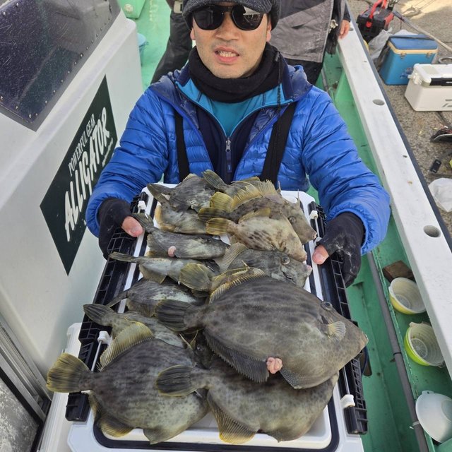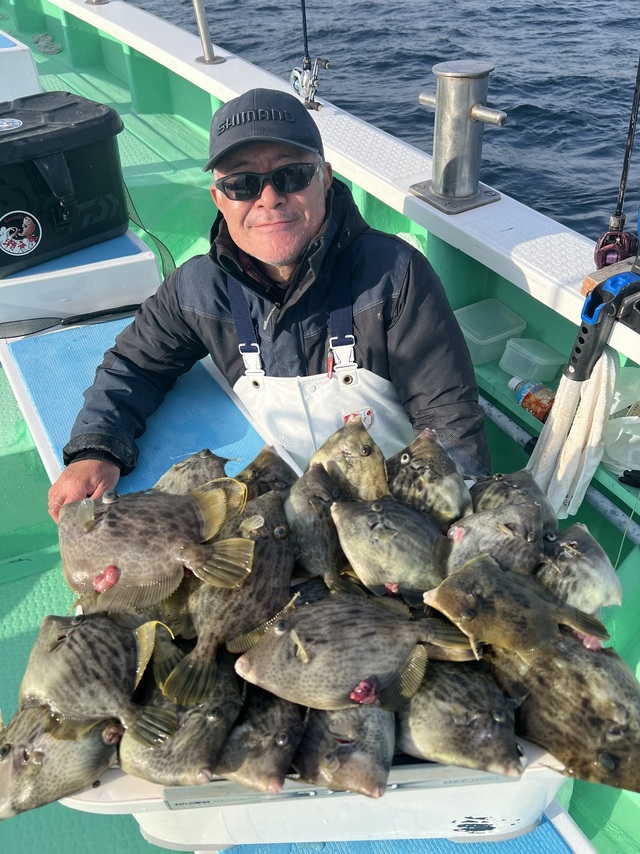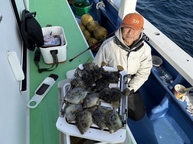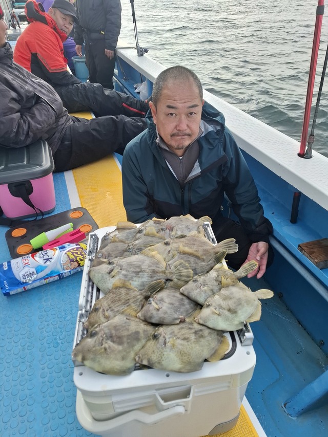 16~30cm 3~25匹 今日も1号&18号船乗合... 21号船仕立てでカワハギ行ってきました! 昨日より潮が濁ってしまってる ポイントや流れがまるっきり逆になってるポイントやらで前半から中盤苦戦(汗) 後半に差し掛かる所から 手が合う方はポツポツと連チャンしたりしてましたねー 初カワハギの親子さんも デカハギ混じりGETしてくれて 良かったー! 1号トップ25枚!23枚!20枚!(2名) 3ー25枚16ー29cm平均10ー15枚 18号トップ19枚!17枚!16枚!15枚.. 5ー19枚17ー30cmでした! 明日も一応2隻出船予定ですが 1隻でも平気な御予約なので ご予約お待ちしております(^^) 後今のところ... 今週14日特に15日は1号船1隻でも良いなーってご予約なので... 土日もご予約お待ちしております(^^)