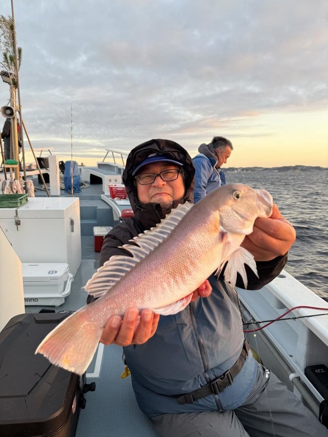 18~28cm 1~9匹 メイチダイ タコ イシガキダイ カサゴ アカハタ 皆様あけましておめでとうございます。 今日は日頃の行いが良いのか ベタ凪で真冬とは思えないほど暖かく 最高の釣行でした。 前半戦は潮がなかなか定まらず 右へ左へフラフラしていましたが 船中パタパタっと釣れる場面もありました。 キタマクラは年中無休で大漁! 小型~中型サイズが多く あさりを一口では食べれないような サイズのカワハギの気配を感じました! ワッペンサイズのカワハギとは戦ったことがないので 上手くアドバイス出来ずすみません。 エサが残る方が珍しいくらい エサをとっていました! ポイントによってはサバフグも出ましたが少なめ。 後半戦は潮の流れはしっかり出てきて よっしゃー!!!!!!これからー!!!!!! っと気合いを入れ直したのですが 思うようにカワハギの塊を見つけられず……。 そんな中皆さん諦めずに 頑張ってくれてラストスパートで 良型が連チャンで出ました。 そして今日のMVPは小学6年生の釣りボーイ!!!!!! 神経締めをレクチャーをすると 1度で完全にマスター!!!!!! エア抜きのレクチャーをすると 1度でマスター!!!!!! 大人顔負けで なんとこの激ムズ釣行で7尾ゲット。 素晴らしい。 1日を通して激ムズでしたが 全員安打を果たし 私としては最高のスタートダッシュだったなと思います。