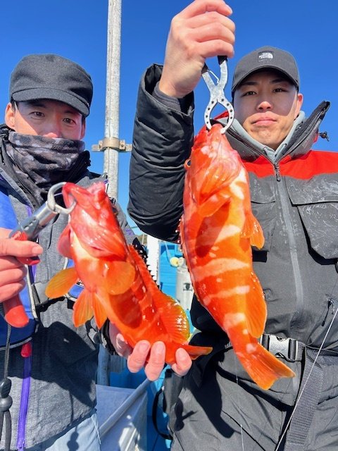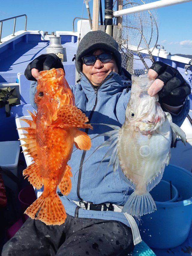 20~40cm 4~13匹 オオモンハタ 27cm 合計1匹 カサゴ 18~27cm 4~10匹 ホウボウ 40cm 合計1匹 イネゴチ 35cm 合計1匹 6名様で出船しました。 朝2時間ほどお客様の用意します生き餌でヒラメ狙いましたが、本命は型見れず。 そこから根魚ねらっていき、ポツリポツリひろっていけました! 潮流れがほとんどなかったので、流れがあればもう少し釣れそうでした!