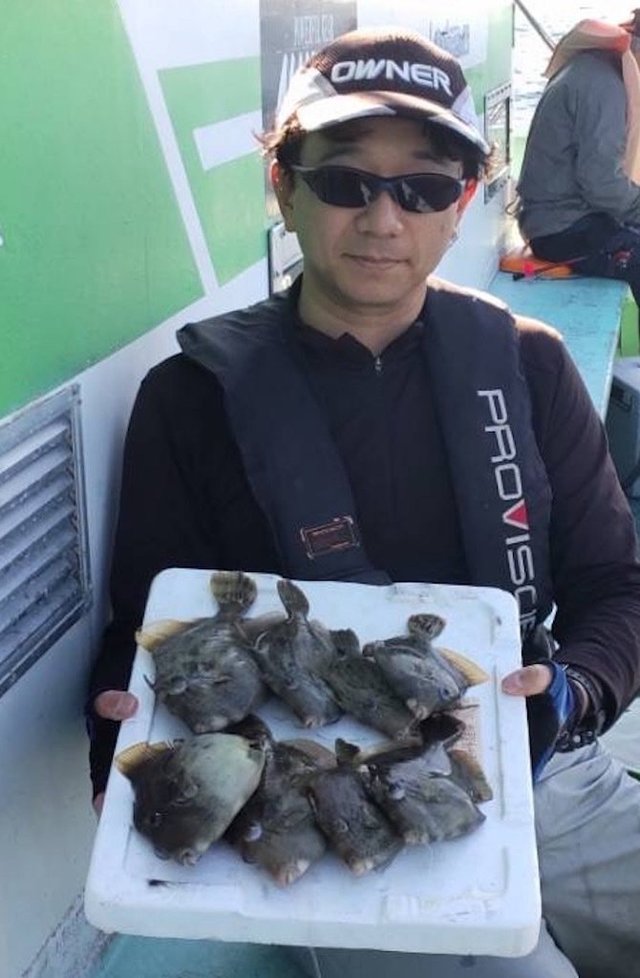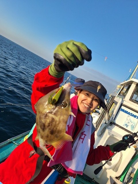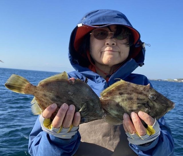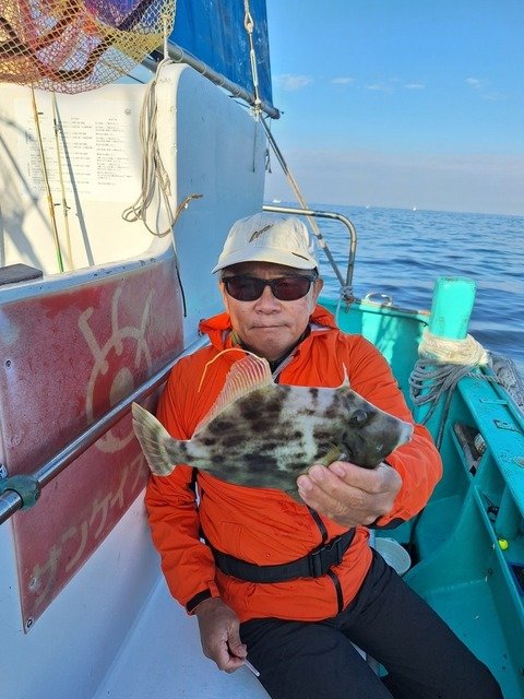 カワハギ 20~25cm 1~5匹 ベラ キタマクラ エソ カサゴ 今日は前半ベタ凪 後半は南西の風と潮がぶつかり 三角波釣行でした。 前半戦はゆっくりとですが 潮流れがありました。 ただ!カワハギはなかなか顔を出してくれず 船中で顔見たのは9時45分。 その時はパタパタと顔を出して やっと始まったか!?!?!?水色やや澄。 なんて思いましたがそう甘くはなく エサが残ってくることも多々。 先日カワハギ試し釣りに出た時は 城ヶ島の雰囲気が良かったそうなので そうそうに向かいましたが 状況はあまり変わらず ベラ、ベラ、キタマクラ、エソ、エソ、オキゴンベイ くらいの打率。 カワハギっぽいアタリがあっても 追い食いは全くしてこない。 後半戦は潮流れが少し早くなって 風と潮がぶつかってしまい 波が三角になりシケていきました。 状況はあまり良くならなかったのですが 皆さん粘り強く頑張ってくれて13時に 無事全員安打。 キタマクラはいつも通り多かったのですが 同様かそれ以上にベラが多い! 引きも似ているのでオレンジ色の魚影が見えると 結構ガッカリしますよね。 エサ取りがとにかく多いので 手返しが早いお客様だと アサリが足りなくなってしまっていました。 そんな状況だったので 今日は残業だぁ!!!!!!という 気持ちだったのですが 海が悪くなってしまって 泣く泣くフィニッシュ。 最後の最後にブザービートで 1尾追加出来たのはテンション上がりました。 最後の1尾以外は真っ黒な色のカワハギで まだ夏ハギで機嫌が悪いのかも?? また明日も頑張ります。 ありがとうございました。