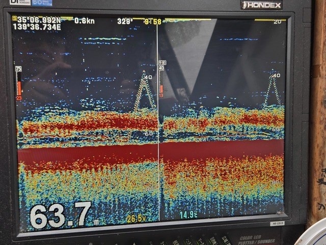 (ケンサキイカ)15~25cm 0~19匹 マルイカ狙いに転向してから誠に不甲斐ない釣果しか出せていませんが、たくさんのお客様がお越し下さいました。 今日はそのもやもやを吹き飛ばすことのできる陣容、年甲斐もなく気負い過ぎたか?見事にコケました・・・ 昨夜までの強風で大きなウネリが残り、底荒れとでもいいますか潮色は濁っています。 一昨日まではあれほど容易に見つかっていた反応が見当たらず、西へ東へ右往左往。 ようやくソナーで捉えても、船下に入ってこない、反応に乗せきれていないといった状態。 最後までペースをつかめず終了、申し訳ないボウズの方2名出てしまいました。 まだシーズンはこれからです、噛み合えば良い日もあると思います。 皆様のチャレンジお待ち致します。