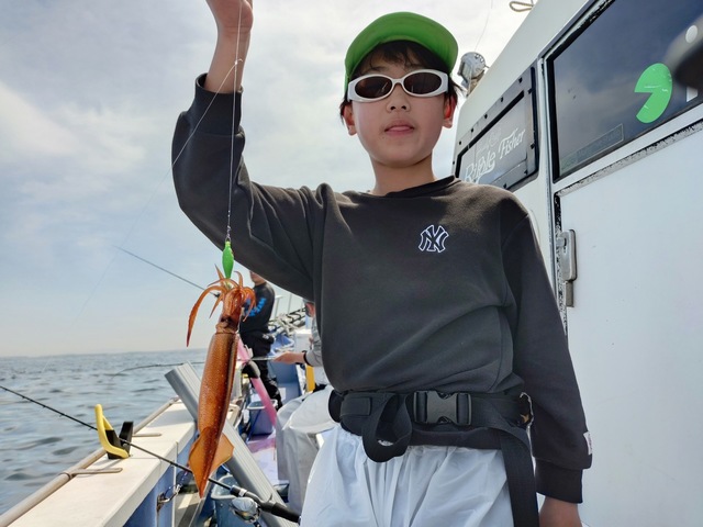 (ケンサキイカ)15~28cm 3~15匹 今日はマルイカに出船しました! 朝のうち反応がなかなか見つからず、たまに見つかるようになってきたけど顔見れる程度な感じで途中3.4回出来る流しもあって後は流せば顔見れる感じはあったけど難しい感じでした。マルイカ初挑戦のお子様3杯釣れて3~15杯でした! 4月土日平日空きあります。 よろしくお願いいたします! 夏のルアー、8月からのコマセマグロ、カツオも受け付け中です!
