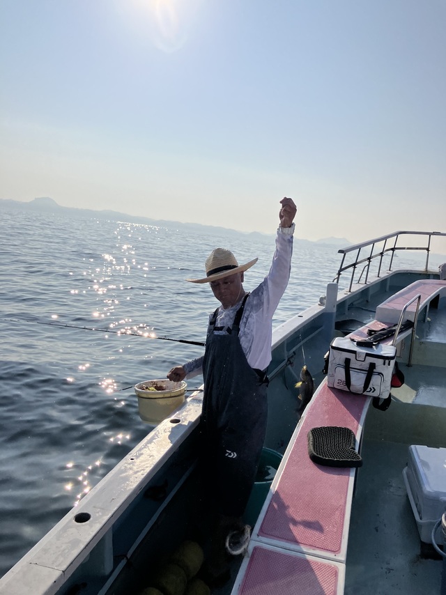 (マアジ)イトヨリ ホウボウ カワハギ サバ ソーダ カサゴ 金居御一行様真鯛五目仕立、ありがとうございました。 今日は、風も無く、暑い1日となりました。 釣果は、大アジ・イトヨリ・ホウボウ・カワハギ・サバ ソーダ・カサゴが、釣れました。真鯛の顔は見れなくて、 残念でした。また、チャレンジお願いします。 乗船ありがとうございました。お疲れ様でした。