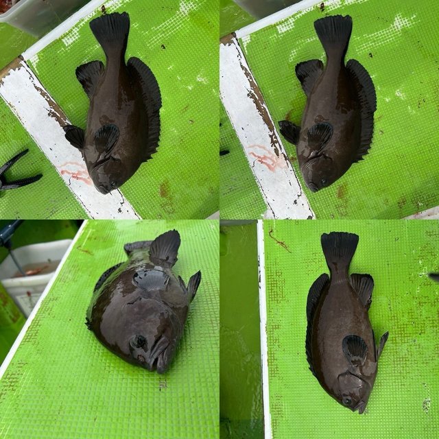 (マアジ)28~40cm 4~21匹 今日14日は朝の内は曇りベースで薄日も差し込むような時間帯もありましたが、昼前には雨がポツリポツリと降り始め、風も南の微風から次第に吹いてきそうな海の感じになって来て、陽気は下り坂の気配です。明日15日の予報はまさにそうで、雨は土砂降り、風は南西の強風で時化模様の予報なので全船休船確定しました。明後日16日は治まって快晴&ベタ凪になる予想ですので、是非お出掛け下さい。アジ五目船、根魚五目キンメ・クロムツ船で出船します。是非お出掛け下さい。アジ五目船は近場の根回りから開始でしたが、アジは顔を見られた程度で早々に深場に移動でした。この所狙っているデカアジのポイントですが動きは速くて、仕掛けを下ろすとオヤッ?って時もありますが、今日も最初は捕まりませんでしたが、次のポイントでは直ぐに当たり始め、一荷釣りがあったり入れ食いで釣り上げて来る方もいてようやく捕まった感じでしたが、アジがデカいせいか、上手く当たりを取れない方もいて、入れ食いの方もいますよって言うとエエ~見たいな・・・その後西寄りにポイントを移しやはりデカアジがポツリポツリと当たり、そこで、それまで当たりが悪かった皆さんもお土産って感じでした。明日は休船になりますが、明後日16日からはまた通常通り出船しますので是非お出掛け下さい。