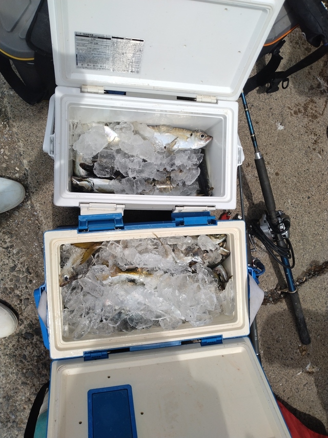 (マアジ)18~30cm 30~50匹 他船より1時間遅く出船し、1時間早く上がりました。食い良し!型良しでクーラー満タンでした!