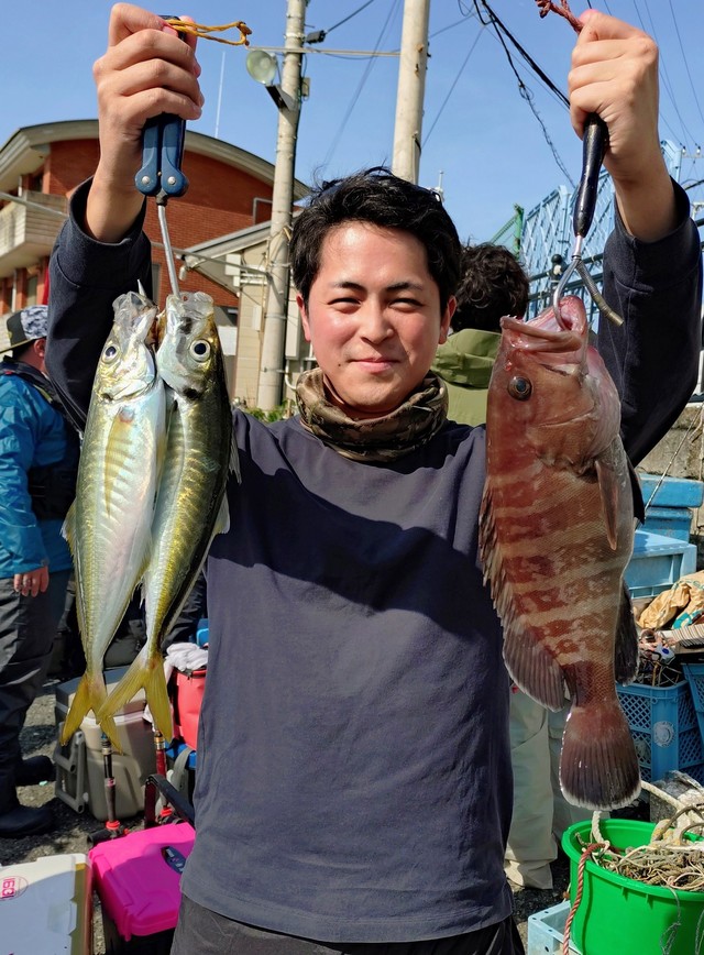 (マアジ)竿頭35匹 マダイ 0.80~2.00kg 0~3匹 サバ クロダイ イサキ 今日は小潮、明日も小潮。 5月からは5:30出船になります いつもご覧いただきありがとうございます。 ノッコミ場、早朝は真鯛やイサキがヒット。最近は真鯛だけでなくイサキの魚群も入り混じって入るようになってきています。 早朝の当たり(6-8時)以降は漁礁スポットでも真鯛・大型のアジ&サバも釣れています。 この頃はアジ&サバのヒット数も増えて、お祭りも見られます。予備の仕掛けは多めにご用意ください。 タナ位置・コマセカゴのズレは真鯛が警戒するため、ズレ防止のためにラインの1m&5mマーク、10mの色の変化もゆっくりと確認しながら位置を揃えるようにお願いします。 潮色と流れ:濁り、ゆるい。 風向きと強さ:北東、弱い。 波高:0-0.5M→0.5-1.0M。