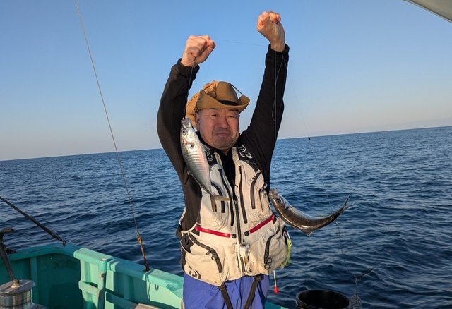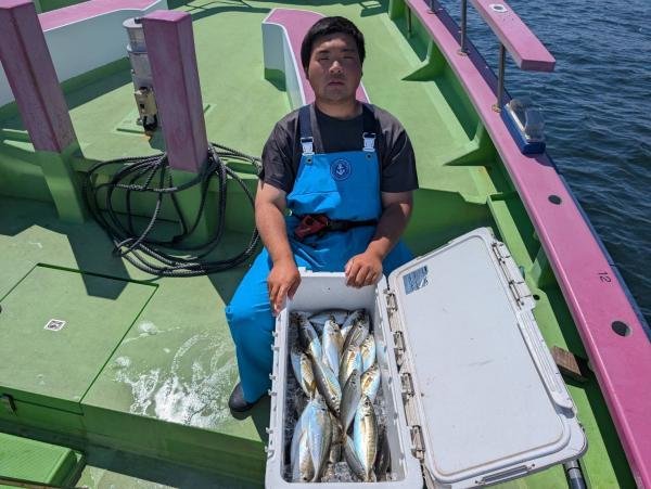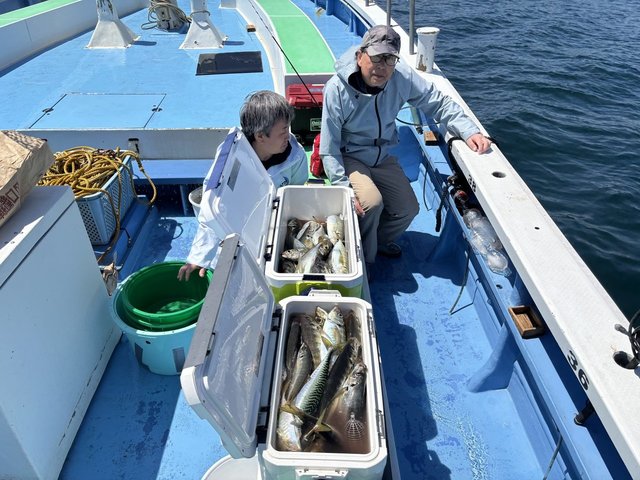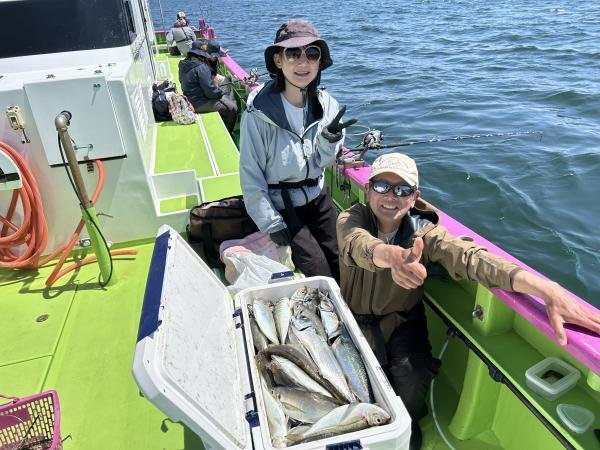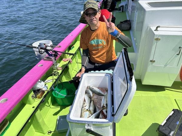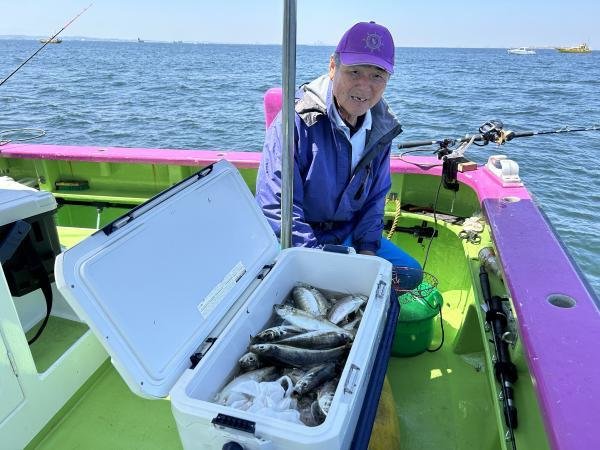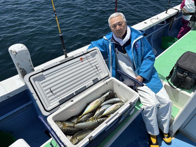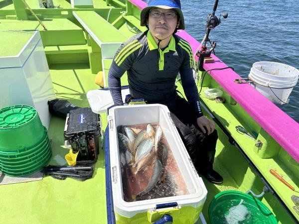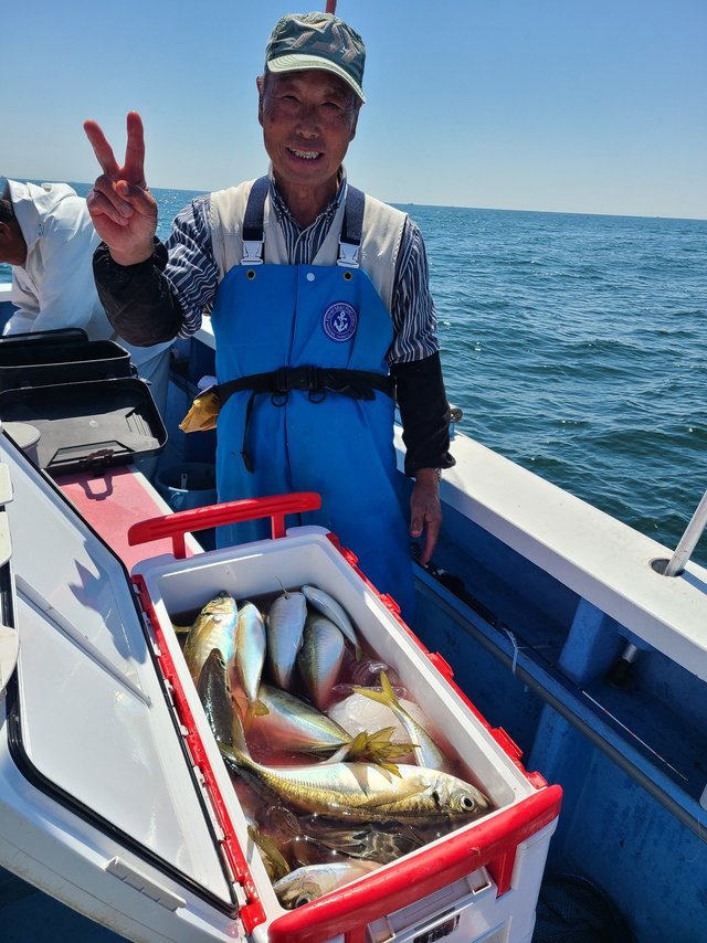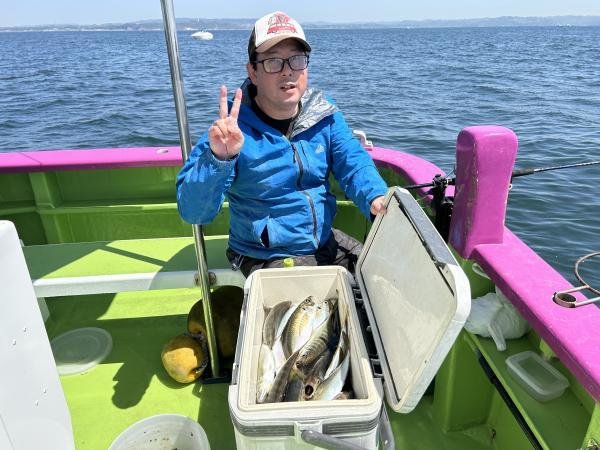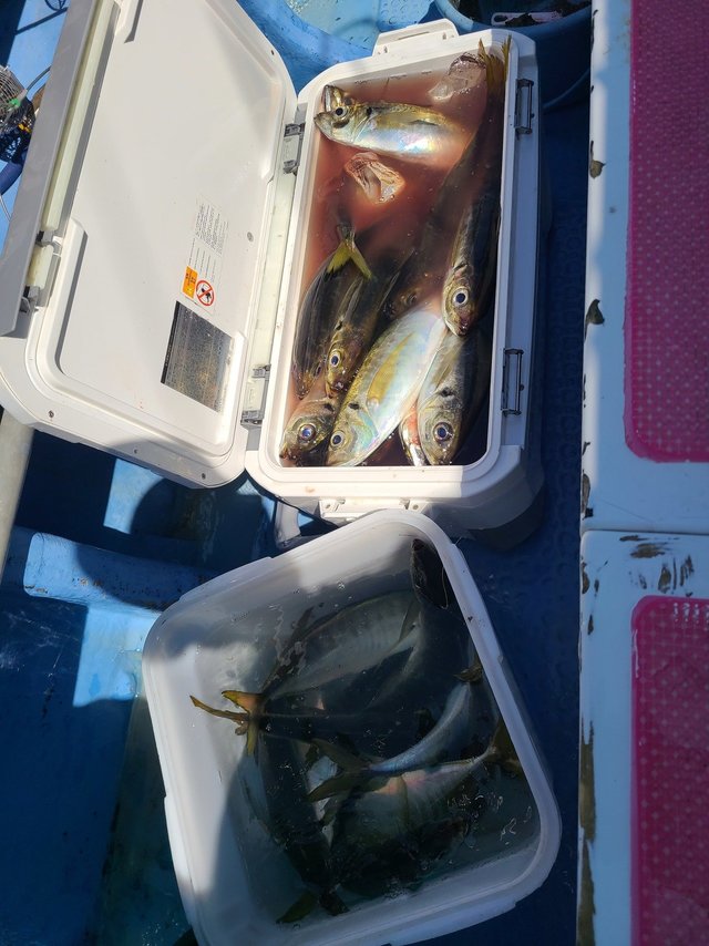 (マアジ)24~38cm 4~47匹 ショートアジ船。今日はさらに潮が速い。型を見れる所はポツリポツリ釣れる場所もあり!ダブルもあったり?サイズ感も悪くなく難しいながらもお土産にはなりました!最後の上げ潮は帰るのが勿体ないぐらい良くなって来ましたが時間切れでしたね。潮は激流なので棚取りしっかりと赤クラゲもかなり多いので拭き取りをお願いします!今日も1日ありがとうございました!明日も宜しくお願いします。 LTショートアジ船。 22-40cm、12-55匹。今日も走水周辺メインに!GWでお子様アングラーにたくさん来て頂き気合充分で出船。ですが走水沖は甘くはなかったですね…。前半は潮速く大苦戦。。気合入れた冒険も不発…。 船団合流させて頂き、良型12316;大アジでポツポツと。お子様も一生懸命にコマセ撒いてくれてましたね。淀みから食いも加速!ダブルもトリプルも。 皆さんお土産ゲット出来ました。自己記録更新の女性アングラーもクーラーいっぱいに。 これからGW後半にかけて潮は緩くなってくのでおすすめです。 GW中通常ビシアジ船もライトアジ船も空席ありますよ。 親子でもカップルでもご夫妻でも。ぜひチャレンジしてみてください。