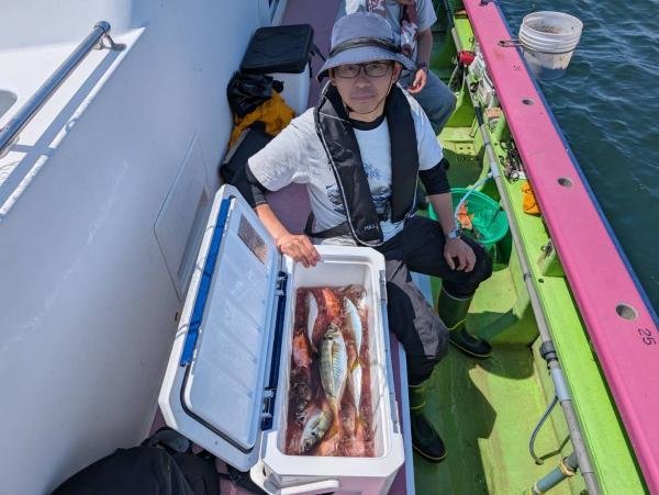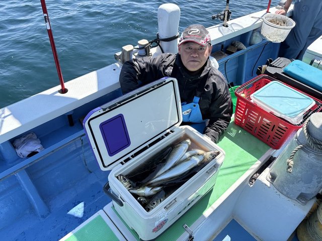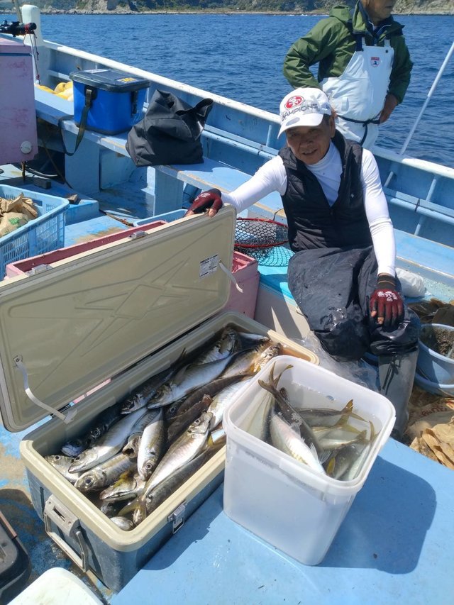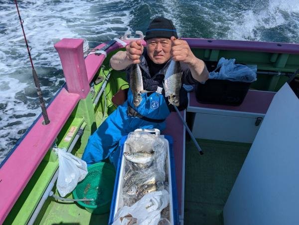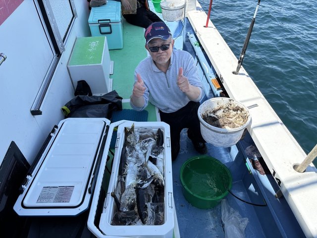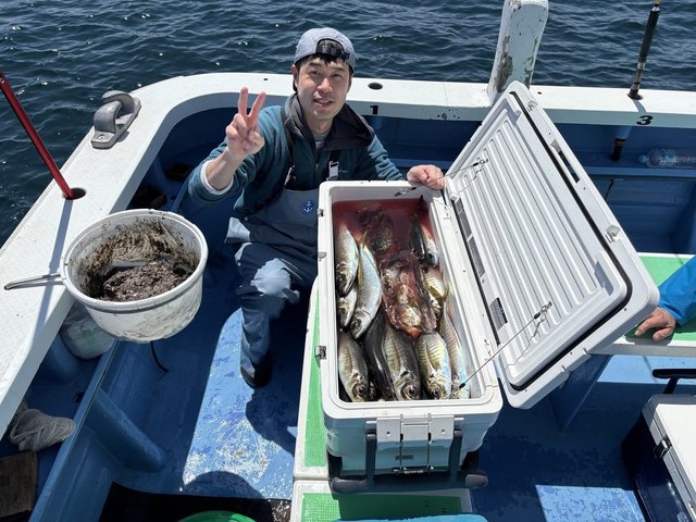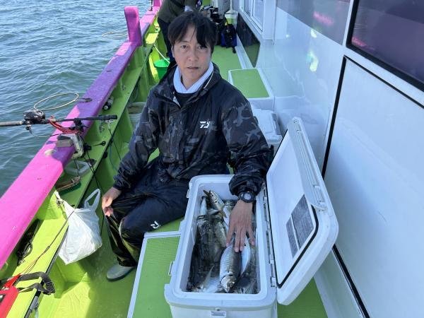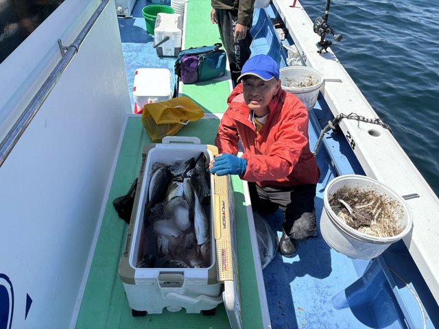 (マアジ)27~35cm 15~25匹 マダイ 1.50~5.00kg 0~3匹 マダイは良い型でした。外道にクロダイ、イサキが混じりました。アジは大中混じりポツポツ釣れ皆さんお土産になりました。今日も有り難う御座いました。