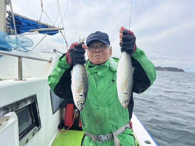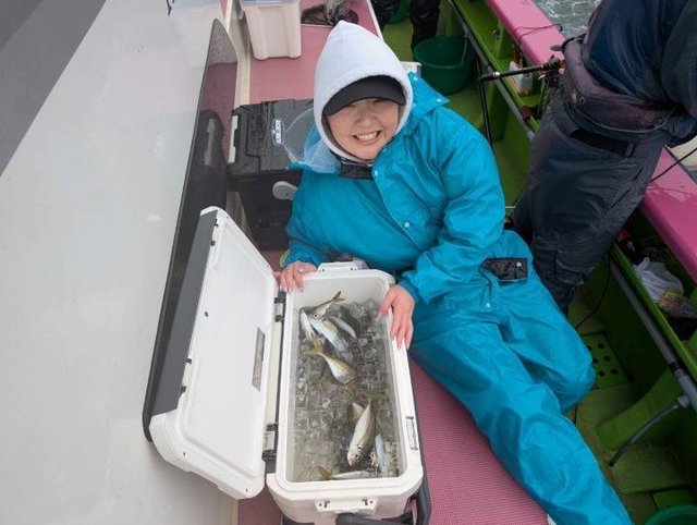 (マアジ)マダイ 最大0.50kg 0~1匹 メジナ カンパチ 0~1匹0.5kg 外道大アジ・メジナ・カンパチ 佐島沖40~70m 今日は、北風が強い中の出船でした。 オカズは、何とか釣れましたが、 雨もあり風が強まった為、12時の沖上りとなりました。 また、良い時にお待ちしてます。 乗船ありがとうございました。 寒かったので、風邪引かないように気を付けて下さい。 明日は、貸切りの為、休ませていただきます。