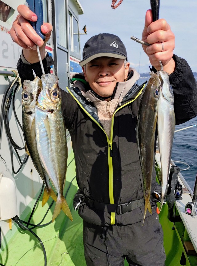 (マアジ)22~41cm 2~20匹 アジ(マアジ) 23~35cm 11~28匹 【午前アジ】 ポツポツ釣れました。外道無し。数は延びませんが型は良かったです。 【午後アジ】 前半釣れました。外道ホウボウ。 明日3/21午前アジ出ます。予約無しでも乗れます。
