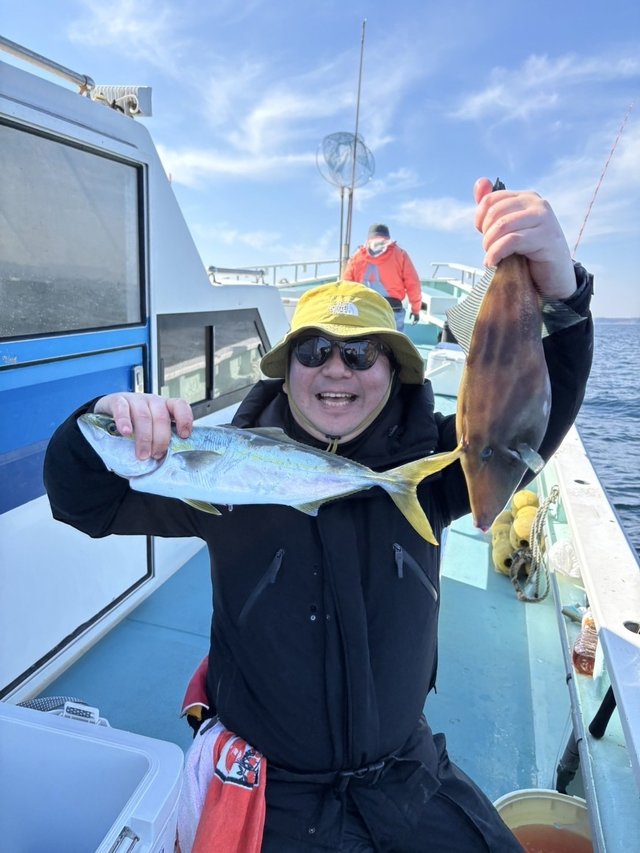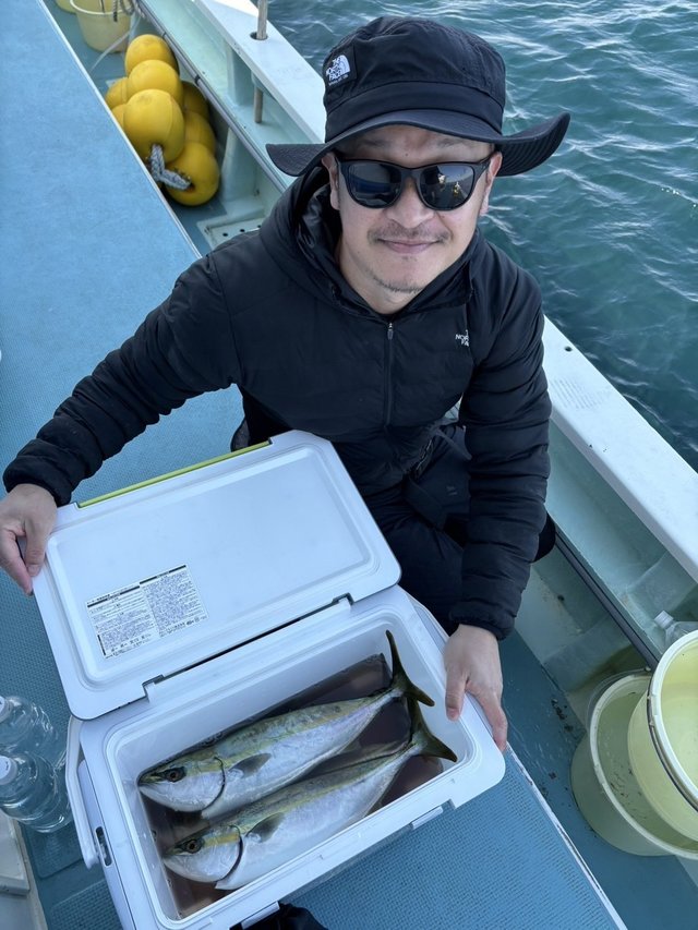 (マアジ)21~38cm 10~20匹 マダイ 0.60~1.00kg 0~1匹 今日から出船時間が6時30分になりました。 マダイはポッツリポッツリの喰いでしたが、なんとか顔見ることができ、イナダが活発に釣れ皆様お土産になりました。 アジ船今日が初出船で、親子さんで頑張っていただき、大アジ混じりでお土産になりました。マダイ船、アジ船共に予約のお電話お待ちしています。予約のお電話お待ちしています。