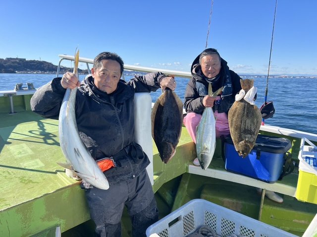 アジ五目で出船しました。 平均サイズ25cm 外道ヒラメ、ワラサ 朝一港前直ぐの所からスタートして反応あるが中々食わず苦戦しましたが場所を変え幅広で黄色いコロコロして美味しそうな走水沖産の良型アジと外道混じりでポツリポツリ食ってくれたのでクーラー一杯お土産確保出来ました。 差し入れありがとうございます。 コロナウィルスの為お願いがあります。 乗船日当日の朝必ず体温を計ってから来て下さい。 咳が出てる方、37.5℃以上の方は乗船ご遠慮下さい。 ゴミも感染する可能性がありますので各自お持ち帰り下さい。 朝の受付時、下船時には消毒液を用意してますので使って下さい。 船にもあるので使いたい方はどんどん言って来て下さい。 ご協力よろしくお願いします。 予約状況はHPで確認出来るのでHPで見て下さい。 乗合は2人から出船しますのでお気軽にお問い合わせください。