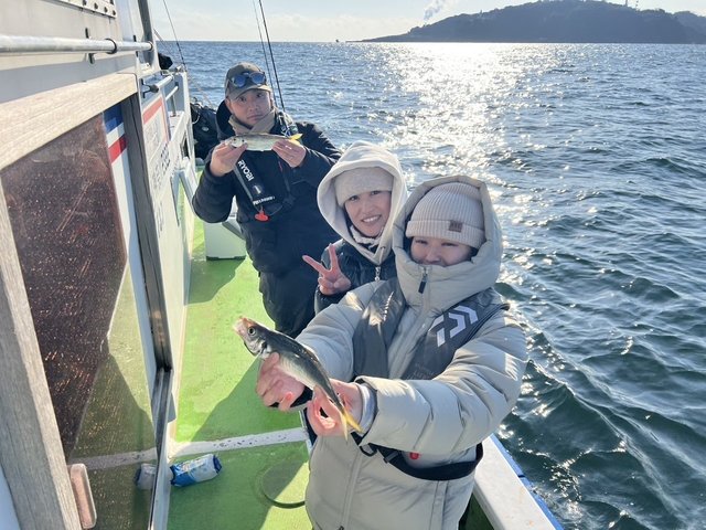 (マアジ)22~38cm 2~33匹 タチウオ 70~110cm 7~33匹 『明けましておめでとうございます。本年も宜しくお願い致します。』 ■タチウオ&アジリレー船■ 〈タチウオ〉天秤/10‐33本。テンヤ/7-23本。走水~観音崎沖70m。※天秤(サバ切り身付)。人数が多ければ2隻出船可能です。※テンヤ釣りはPE2号以下厳守で貸道具はありません<イワシ10尾700円で店販売>。走水~観音崎沖で反応良く、アタリ多く、天秤、テンヤ共に好調でした。 〈アジ〉観音﨑沖60m。中型主体に大型混じりでポツポツと釣れておかず確保できました。