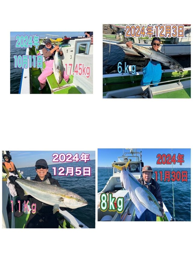 (マアジ)111~999匹 今年はありがとうございました。 来年も頑張っていきますので宜しくお願いします。 2025年1月2日からアジで出船しますので宜しくお願いします。 コロナウィルスの為お願いがあります。 乗船日当日の朝必ず体温を計ってから来て下さい。 咳が出てる方、37.5℃以上の方は乗船ご遠慮下さい。 ゴミも感染する可能性がありますので各自お持ち帰り下さい。 朝の受付時、下船時には消毒液を用意してますので使って下さい。 船にもあるので使いたい方はどんどん言って来て下さい。 ご協力よろしくお願いします。 予約状況はHPで確認出来るのでHPで見て下さい。 乗合は2人から出船しますのでお気軽にお問い合わせください。