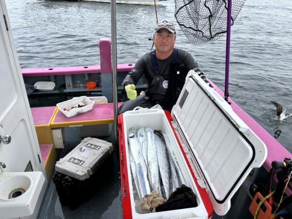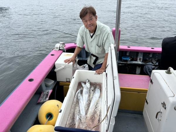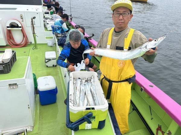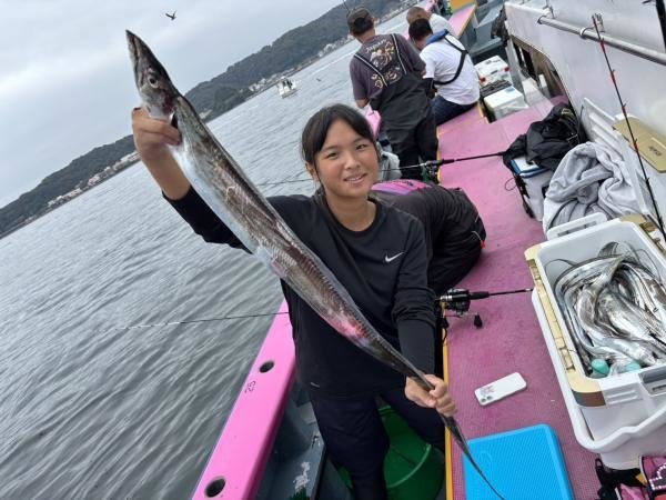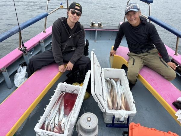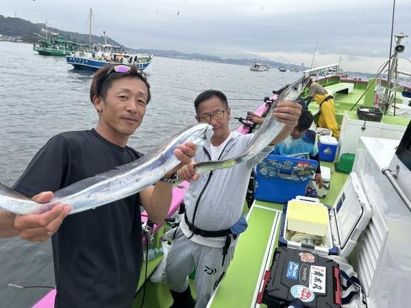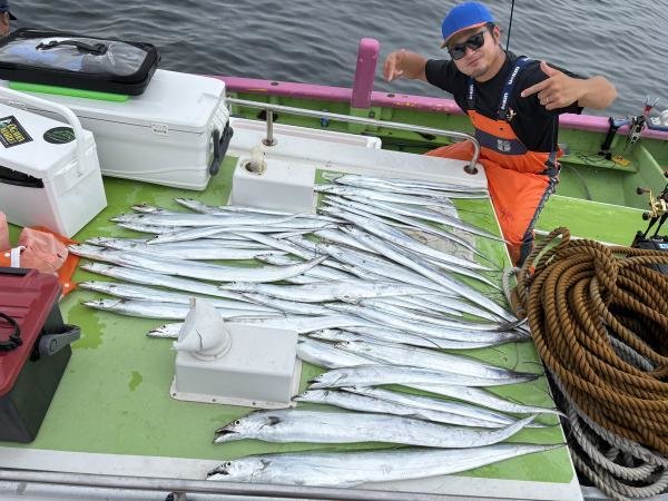 (マアジ)23~38cm 3~35匹 タチウオ 70~110cm 11~29匹 ■タチウオ&アジリレー船■ 〈タチウオ〉天秤/13-29本。テンヤ/11-24本。走水沖60m。走水沖で反応見れて、活性良く、アタリ多く、天秤、テンヤ共に好調でした。 〈アジ〉観音崎沖50m。中~大アジ混じりで、喰い良く釣れました。