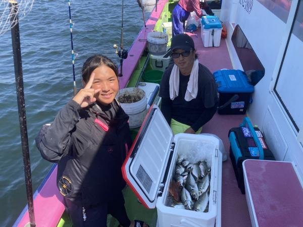 (マアジ)マダイ ハナダイ サバ クロダイ イトヨリ マダイ五目船です。0.4-2.6kg1-2匹。潮色と流れ:薄濁ゆるい。 風向きと強さ:南西弱い。 波高:0-0.5M。