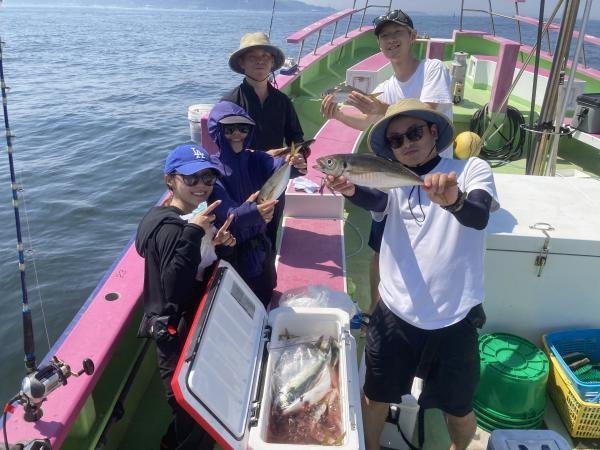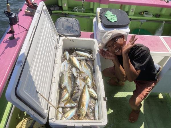 (マアジ)23~42cm 7~40匹 アジ狙いで出船しました。 平均サイズ27cm 今日は暑過ぎで皆さん休み休みやってる方も居ました、明日も更に暑いみたいなので気を付けてください、アジは反応の割に食いが悪くポツリポツリと余計には上がらなかったけど後半は40cm前後のデカアジが上がりました。 差し入れありがとうございます。 コロナウィルスの為お願いがあります。 乗船日当日の朝必ず体温を計ってから来て下さい。 咳が出てる方、37.5℃以上の方は乗船ご遠慮下さい。 ゴミも感染する可能性がありますので各自お持ち帰り下さい。 朝の受付時、下船時には消毒液を用意してますので使って下さい。 船にもあるので使いたい方はどんどん言って来て下さい。 ご協力よろしくお願いします。 予約状況はHPで確認出来るのでHPで見て下さい。 乗合は2人から出船しますのでお気軽にお問い合わせください。