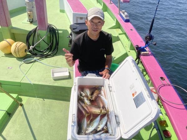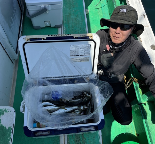 22~40cm 6~95匹 観音崎沖でやり 朝一番はダブル~トリプルと ころっとした中アジ主体で、あたり良く 皆さん見れて楽しめ 後半はデカアジ混じりで ポツン~ポツンでしたが 帰りまで何とかやって 竿頭95匹、2番手81匹、三番手70匹の結果で フルレンタルのお客様も 6~34匹とお土産十分キープ出来ました。 また皆さんで遊びに来て下さい。 勝司船長