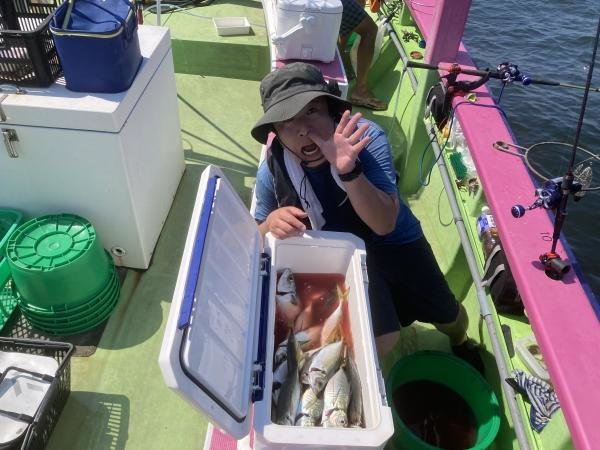 (マアジ)15~37cm 4~14匹 カンパチ 32~42cm 5~20匹 イサキ 22~30cm 0~5匹 ワカシ 27~33cm 1~7匹 チカメキントキ 24~34cm 0~3匹 LT五目船 カンパチトップ20匹が2人 マダイ、メジナ、ウマヅラ、サバ多数 青物はイナダ仕掛けと食わせサビキを上手く使い分けてください
