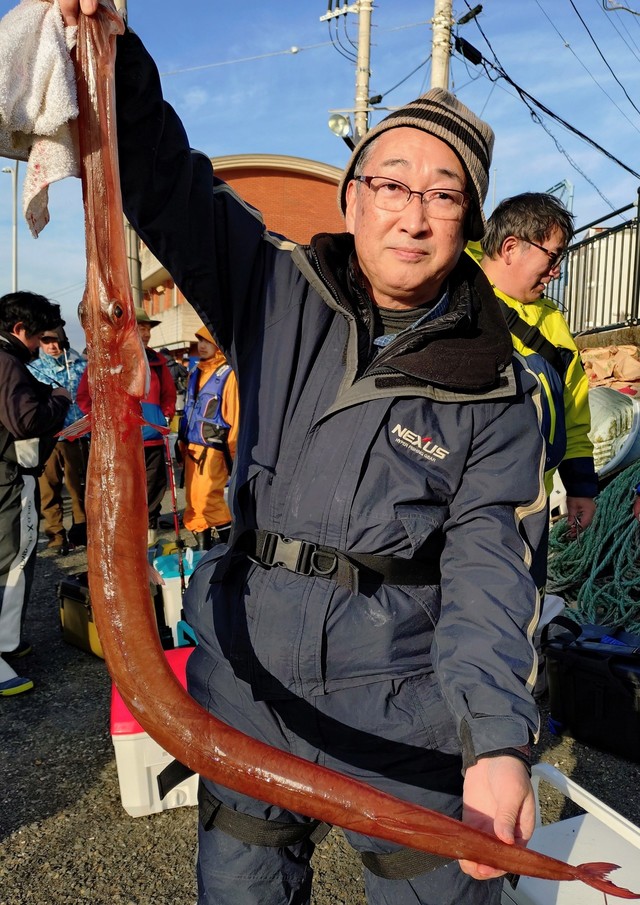 (マアジ)18~40cm 3~18匹 タチウオ 65~123cm 0~7匹 ■タチウオ&アジリレー船■ 〈タチウオ〉天秤/0-5本。テンヤ/7-7本。観音崎沖80m。観音崎沖で反応少なく、単発、単発の拾い釣りでした。 〈アジ〉観音崎沖50m。小~中~大アジ混じりでポツリポツリと釣れました。