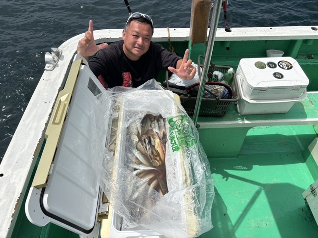 (マアジ)23~42cm 10~25匹 マハタ 2.10~2.50kg 0~1匹 クロムツ 28~35cm 0~1匹 【8月8日(木)釣行記】 今日8日も朝から快晴で、気持ちの良い青空が広がりました。風は南の微風で、海はウネリが若干残るものの、全体的には穏やかで、絶好の釣り日和の中で出船することができました。 明日9日も引き続き天気は快晴の予報で、風向きは北に変わり微風が続く見込みですので、釣行予定の方は安心してお出かけになってください。 本日は【アジ五目船】【コマセマグロ・カツオ船】の2船が出船。 ◆コマセマグロ・カツオ船 久しぶりの出船となりましたが、今日はなかなか渋い展開に。時折、魚のハネが見られたり、餌が海中を漂う様子もあり、ナブラの気配は感じられましたが、本命との接点は少なく、厳しい一日となってしまいました。 とはいえ、魚の気配は確かにあり、明日以降に期待が持てる状況です。コマセ釣りはもちろん、ルアーやエビングでも狙えますので、ぜひチャレンジしてみてください。 ◆アジ五目船 こちらは、8月から泳がせ・落とし込みでの端物狙い(サバの掛け餌での根魚狙いも含め)をスタート。朝一は浅場の根回りから開始し、仕掛けを投入するとすぐにアタリが出始め、ベイトサイズのアジから中アジ、大アジまで交じって順調に釣れました。 泳がせ釣りを準備していた方々は、すかさず投入。先日ヒラメが上がった実績もあり、皆さん大きな期待を抱いての挑戦でしたが、今日は残念ながらバラシのみでキャッチには至らず…。 しかしながら、サバの掛け餌ではマハタやクロムツ、アマダイ、カンコなど良型の高級魚が次々にヒットし、こちらは大いに盛り上がりました。 明日以降も、朝一は浅場の根回りで多彩な魚を狙い、その後は沖のポイントへと移動するスタイルで展開予定です。アジ五目とあなどるなかれ、豪華なお土産が期待できる内容となっています!