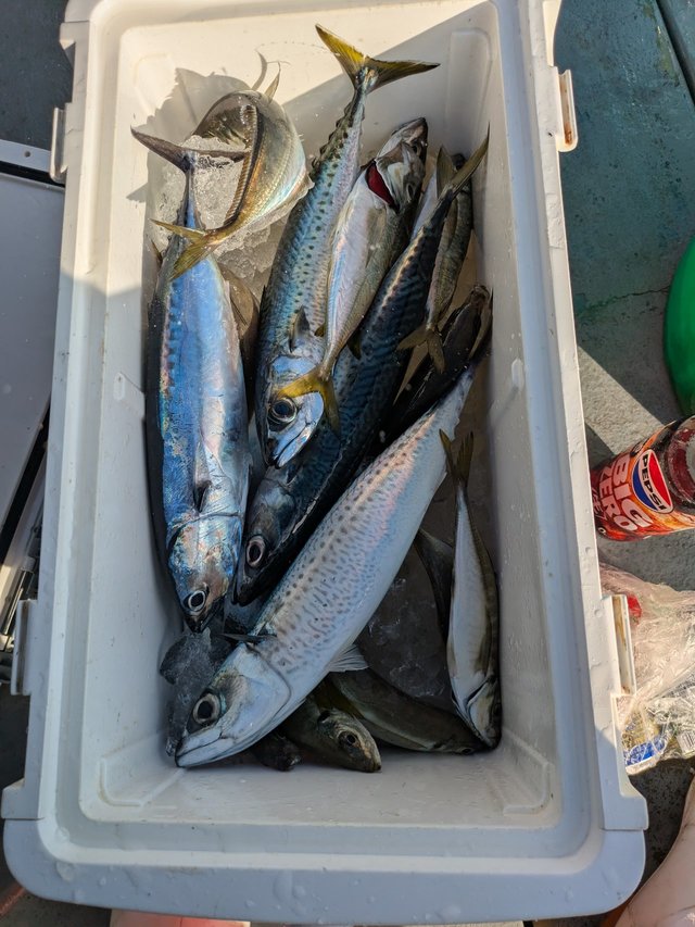 (マアジ)23~40cm 25~122匹 アジ狙いで出船しました。 平均サイズ25cm 外道サバ、タチウオ、マゴチ 前半幅広で黄色いコロコロして美味しそうな走水沖産の中アジがポツリポツリ食ってくれたので後半型狙いで中、大アジがポツリポツリ食ってクーラー一杯お土産確保出来ました。 コロナウィルスの為お願いがあります。 乗船日当日の朝必ず体温を計ってから来て下さい。 咳が出てる方、37.5℃以上の方は乗船ご遠慮下さい。 ゴミも感染する可能性がありますので各自お持ち帰り下さい。 朝の受付時、下船時には消毒液を用意してますので使って下さい。 船にもあるので使いたい方はどんどん言って来て下さい。 ご協力よろしくお願いします。 予約状況はHPで確認出来るのでHPで見て下さい。 乗合は2人から出船しますのでお気軽にお問い合わせください。