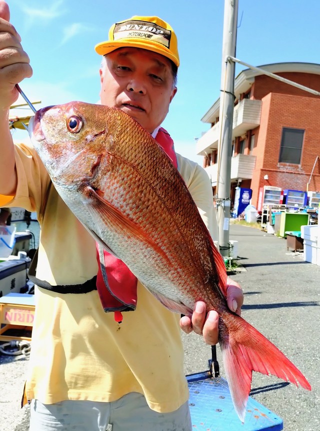 (マアジ)30~40cm 4~12匹 ◆7月25日(木)アジ五目釣行記◆ 今日25日も朝から文句なしの快晴。連日の夏空が広がり、朝のうちは風もさほど強くなく、何とか出船できるコンディション。ただ、南西風は昨日よりやや強めで、時間の経過とともに徐々に勢いを増し、昼前からは本格的に吹き始めました。残念ながら12時半頃には早上がりとなってしまいましたが、それまではしっかりと勝負ができました。 アジ五目船は、いつもの近場の根回りからスタート。朝イチはややスローペースで、魚の活性も控えめ。それでも良型の大アジを皆さんしっかり確保でき、まずはひと安心。その後は、端物(はもの)狙いの展開へとシフト。 最初の深場ポイントでは反応が得られませんでしたが、次の移動先では大アジがすぐに顔を見せ、サバの掛け餌にはカンコが食ってくるなど、にわかに活気づき始めました。さらにポイントを変えると、今度はメダイ3.0kg、カンコ1.4kgといった手応えある魚も登場し、狙いの端物にグッと近づく展開に。 残念ながら本命のマダイやヒラメまでは届きませんでしたが、端物狙いとしては十分に手応えある釣果。皆さん笑顔で納竿となりました。 ちなみに、昨日24日はこの釣行記を更新しようとしたところでまさかのシステムフリーズ。最後のアップ直前でデータが飛んでしまいましたが、今日は何とか無事にお届けできました! そんな昨日は、端物狙いでマダイ2.4kg、特大カンコ2.9kgも上がりました。写真は今日追加して置きます。 明日26日も快晴予報。風はやや強まる傾向ながら、朝のうちは穏やかとの見込みで、全船出船予定です。引き続き大アジ&端物狙い、どちらも期待できそうですので、釣行予定の方はぜひ万全の準備でお出かけください!