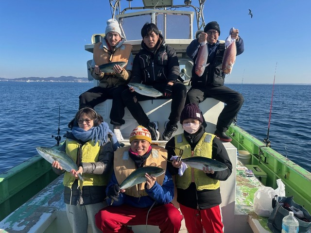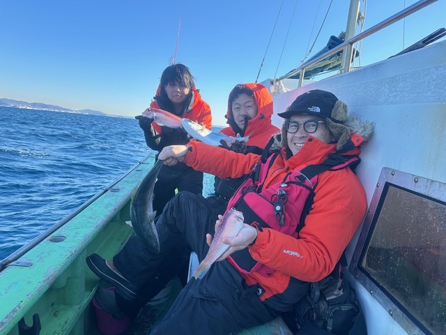 (ブリ)3.60kg 合計1匹 アジ 16~28cm 5~20匹 ヘダイ 25~30cm 0~13匹 ヒラメ 1.50~2.10kg 0~1匹 アオハタ 1.80kg 合計1匹 本日もご乗船ありがとうございました。 今日は、2隻出船しました。 アジ、ヘダイ中心に、色々と釣れて楽しめました。 他も色々。 ワラサ、イナダ、クロダイ、イシダイ、ハナダイ、オオモンハタ、ホウボウ、カサゴ、イトヨリ、など! アタリは良かったですよ! 今年も、ありがとうございました。 来年は、2日から出船となります。 まだまだ、席に余裕ありますよ