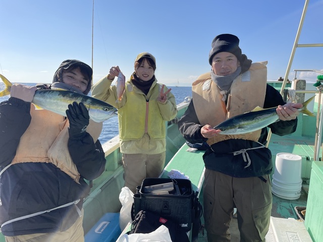 (ブリ)45~50cm 0~4匹 アマダイ 23~45cm 0~4匹 今年一年多くの皆様のご乗船ありがとうございました少しでも楽しい時間を過ごすして貰えたのなら嬉しいです。 来年も皆様と楽しい1日を過ごせるように! ウィリーアマダイ五目イナダ45~50㎝0~5匹アマダイ23~45㎝0~4枚ヒラメサバEtc 朝の内はややウネリが有り船酔いでダウンされた方もいましたがイナダのお土産の他アマダイも良型混じりで顔を出してくれての帰港です! チャーター船 イナダをメインにアマダイとウネリがあるなか皆さん頑張ってくれて良かったです!