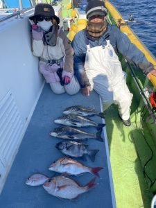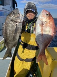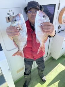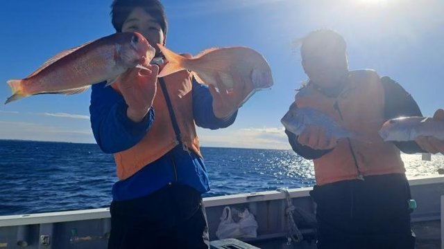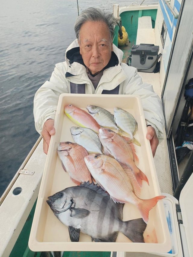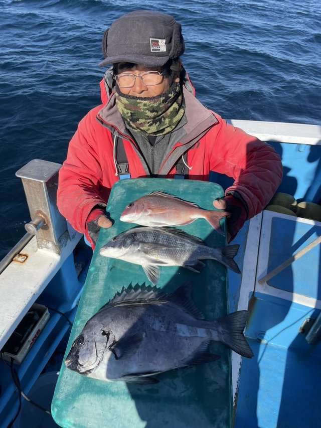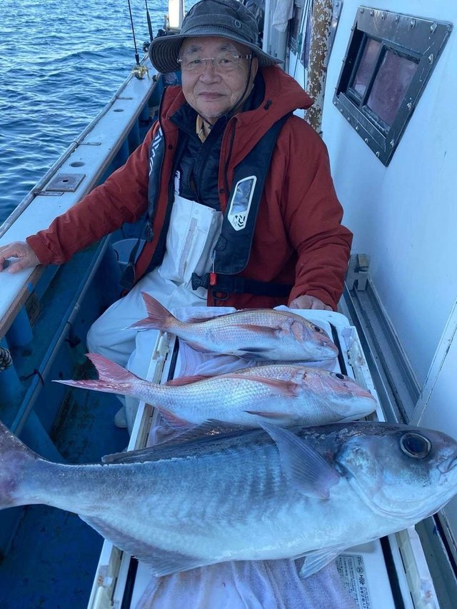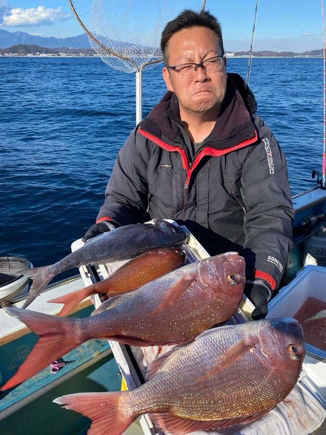 マダイ 0.80~2.30kg 0~3匹 クロダイ メジナ イトヨリ 1号船タイ五目です。久々のタイ五目に行きました。 実は4月からマグロの乗合を 始めてまして タイ船は別の船にお任せしてました。 しかし 今日からマグロの捕獲が 30日迄禁止になり 急遽1号船でタイ五目へ行く事に なりました。 久々のタイ五目で 何処へ行っていいのか分からず 手探り状態で 色々な場所を攻めてみたよ〜。 結構状況が変わっていて 朝からマダイに黒ダイ、イシダイと 顔見れて良い感じ 何処の場所でも 何かしらの当たりは有り 最後は皆さん いよいよですよ〜〜。 ラストはこの時期の お決まりコースで 東へお土産釣りです。 反応は結構見れたけど 船下には なかなか入っては来なくて たまに入ってきては あいつが当たる感じでした。 まぁ〜1時間ちょっとやって 皆さん全員釣れて 狙い通りのバッチリで 帰って来ました。 この時期のマダイ釣りは 各地は乗っ込みですが 相模湾は真っ黒魚で行きますよ〜。 明日も期待して行きましょう。