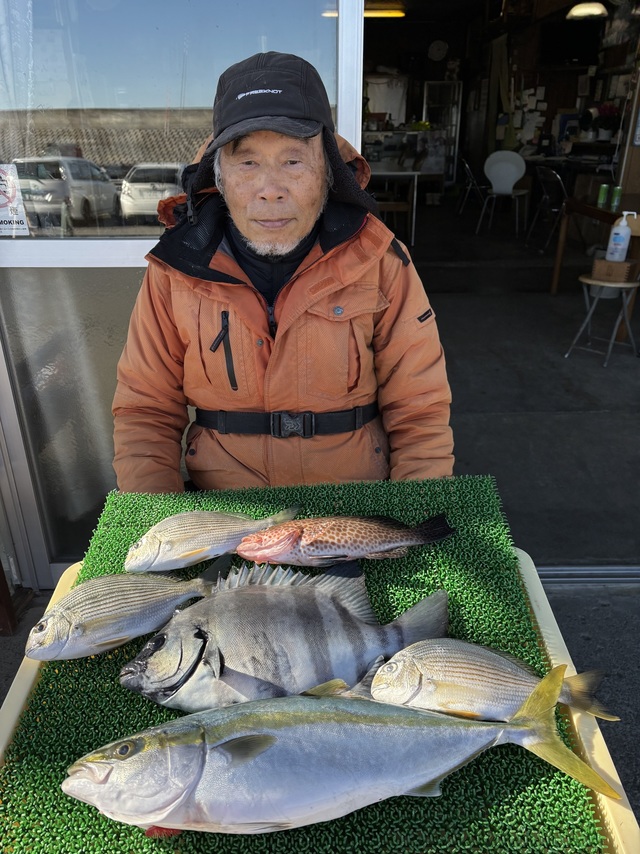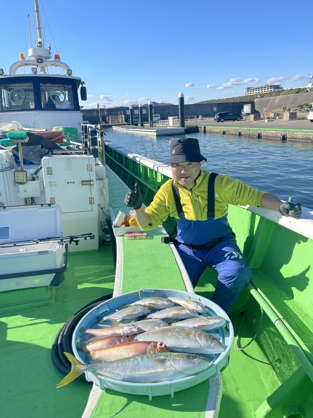 最大2.50kg カンパチ 最大2.20kg メジナ 竿頭7匹 クロダイ 竿頭4匹 アジ 21~35cm 2~12匹 サバ 4匹以上 マダイ ハナダイ 石鯛50cm2.5k!・カンパチ2.2k!他メジナトップ7枚船中23枚、クロダイトップ4枚船中12枚。アジそこそこお土産に21~35cm2~12匹!サバ0~4本、マダイとハナダイ0.3k。 別船ヒラメ3.0k