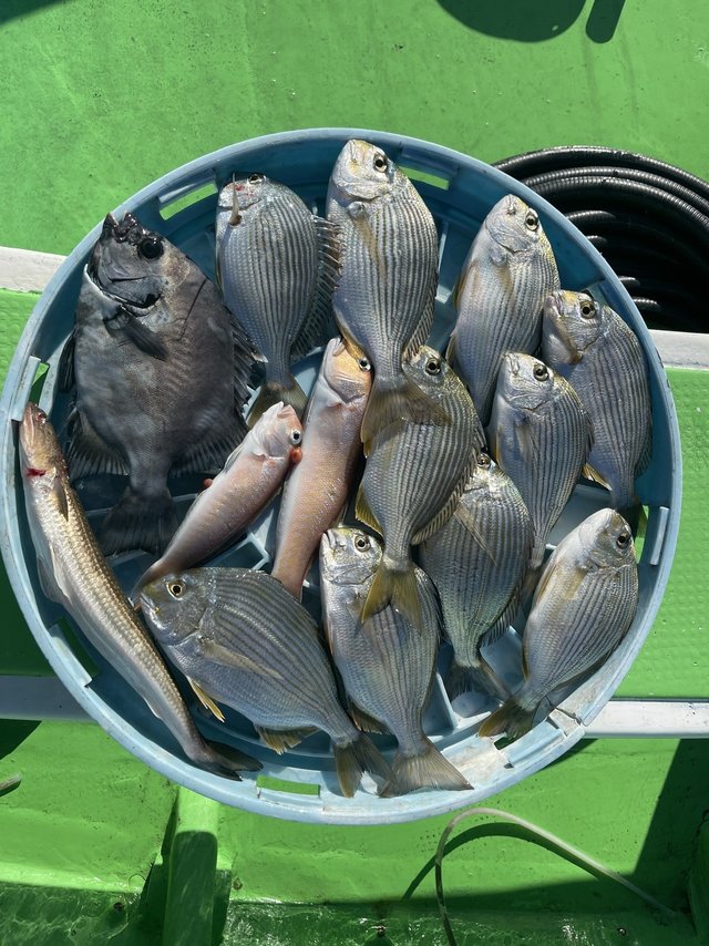 0.40~0.80kg 0~1匹 アジ 19~36cm 6~30匹 ヒラメ 最大2.80kg クロダイ 0.60~2.00kg 0~4匹 ハナダイ 色々釣れました!今日もご乗船有り難う御座いました。 色々釣れて楽しく遊べました! アジは色艶最高な大中小19~36cm/6~30匹。アジ泳がせてヒラメ2.8k、メジナ正味30分。(出船6時に出たの忘れてて上がりが13時でした時間あればもう少し数釣れたような)0.6~1.2k1~3枚(船中12枚)クロダイ/0.6~2.0k/0~4枚(船中7枚)イシダイ/0.4~0.8k/0~1枚後残念ハリス切れ2回、他大中サバ他小型マダイ0.3k2枚他ハナダイ。 明日も出船確定皆さんからの予約お待ちしてま す!