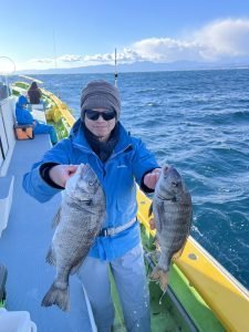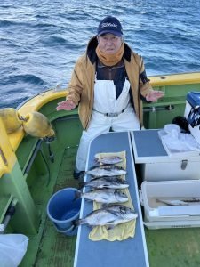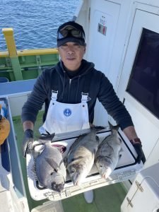 0.30~0.40kg 合計2匹 本日もご乗船ありがとうございました。 あいにく、風が強く吹いてきてしまい、10時半早上がりとなりました。 今日は、色々まじりましたよ! イシダイ、スズキ、シコイワシ、アジ、サバ、イサキ。