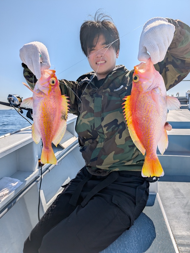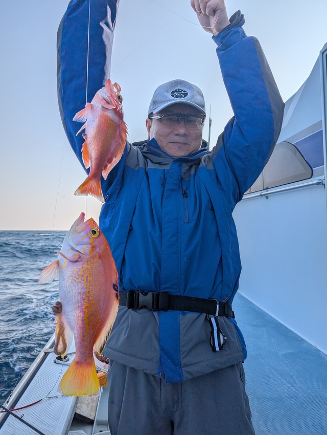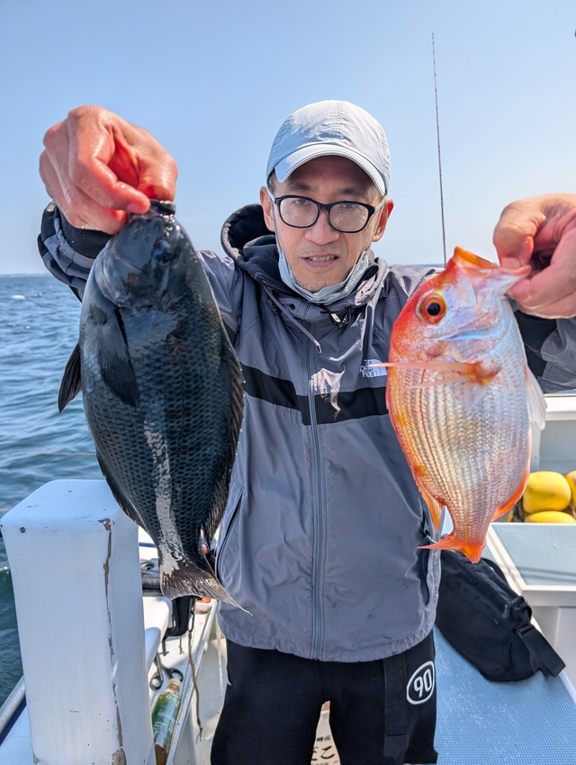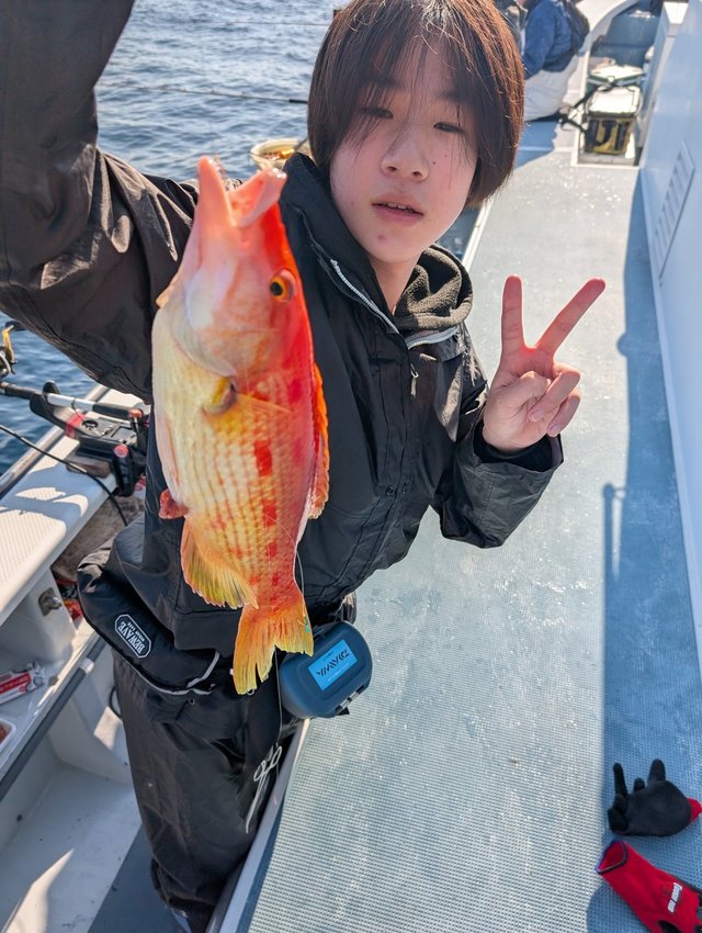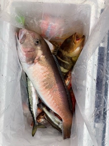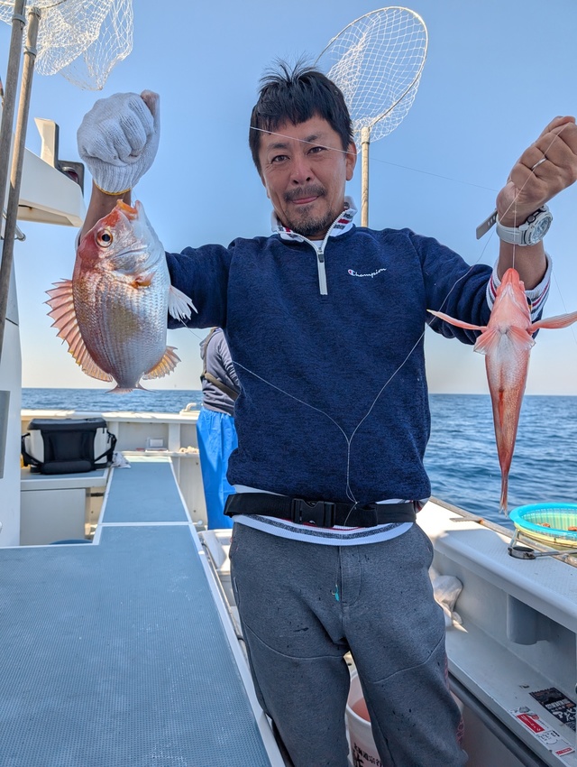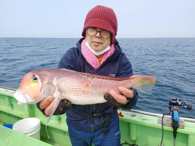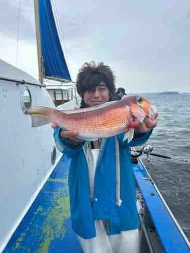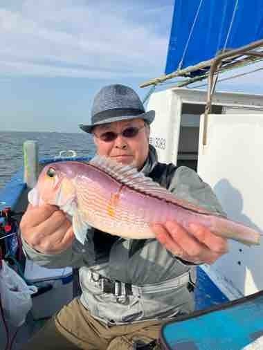 (キダイ)アマダイ 22~40cm 6~17匹 アカボラ カイワリ ムシガレイ カサゴ トラギス 今日は乗合・アマダイ船で出船致しました!アマダイ6〜17匹!サイズ22〜40センチ!アマダイの他には、アカボラ・カイワリ・ムシガレイ・カサゴ・レンコダイ・トラギス等が顔を出してくれましたね!今日は当たり多く好調でしたね!今日は1日アマダイは良い感じに顔を出しくれてましたね。後半にしばらく食い止まりが有りましたが、ポイントを変えて見たらポン・ポンっとゲット出来ましたね!今日お越し頂いた皆様1日寒い中、手持ちで頑張って頂きありがとうございました!
