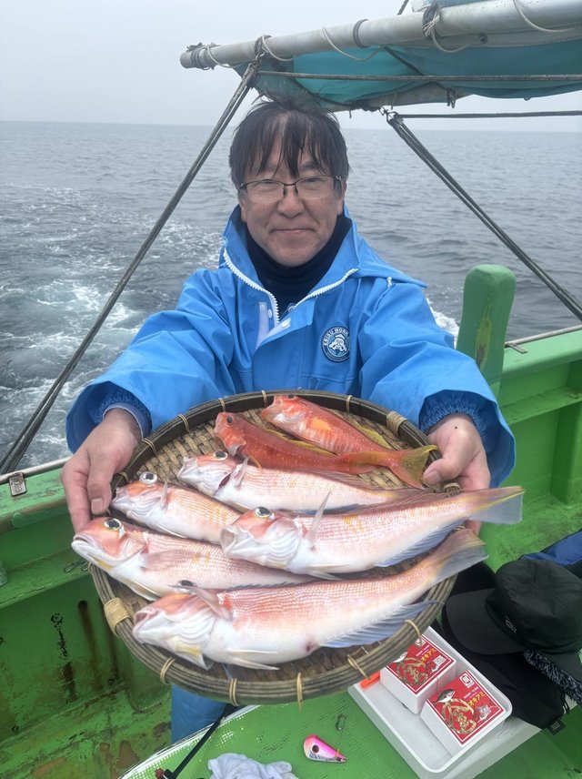 (キダイ)アマダイ 23~43cm 0~7匹 ヒメコダイ イトヨリダイ アラ ユメカサゴ トラギス ソデオカさん!43センチ!(*^^*)ラスト30分くらい??それまでも細かいなりに顔見てくれてて7匹で竿頭!(*^^)v素晴らしい! 他にも、5匹とか4匹とかの方多くいらっしゃいました(*^^*)! 前半の間はデカいの出なくてオヤジ苦しんでましたけど、なんだかんだ出てくれて良かったです(*^^)v