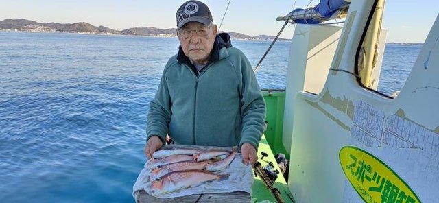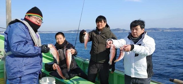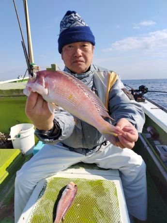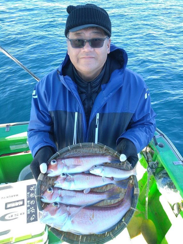 (キダイ)アマダイ 23~26cm 1~6匹 イトヨリ アカボラ カサゴ オニカサゴ トラギス シキシマハナダイ カナガシラ 今日は乗合・アマダイ船で出船致しました!アマダイ1〜6匹!サイズ23〜36センチ!アマダイ6匹は3名でしたね!今日は中型サイズが主体でしたね!その他には、イトヨリ・レンコダイ・アカボラ・カサゴ・鬼カサゴ・トラギス・シキシマハナダイ・カナガシラ等が顔を出してくれましたね! 朝は港の前からスタートしてイトヨリはポツリン・ポツリンと顔は見れるも本命の当たりが無くポイントを移動しました! その後は深場を転々と狙い中型サイズが主体でポチン・ポチンと顔を出してくれましたね!今日お越し頂いた皆様、1日頑張って頂きありがとうございました!