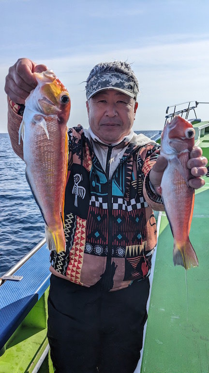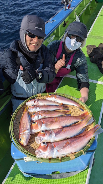 アマダイ船。 朝の2時間は船の向き悪く何も当たりませんでしたが風向きが定まりタナが取りやすくなってからはポツポツと釣れました。 アマダイ5~6匹、他にキダイ、ヒメコダイ。外道は少なかったですがエサ取りは活発でした。