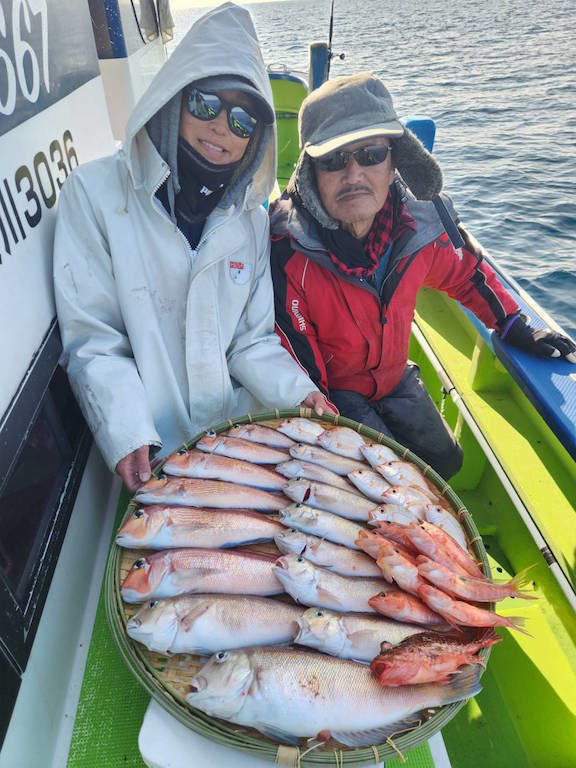 (キダイ)アマダイ 24~36cm 3~6匹 アラ アジ ガンゾウビラメ トラギス ヒメコダイ アマダイ船、今日は、北風が、強く食い渋く苦戦しました。
