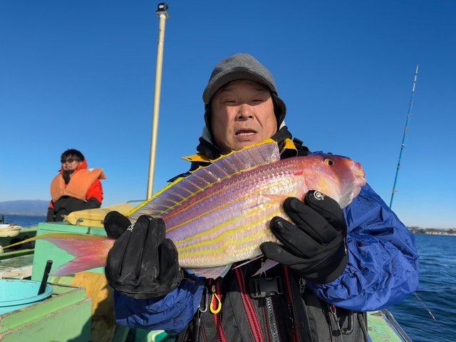 (アカアマダイ)21~47cm 1~9匹 3号船アマダイ船です。本日は時化後の久々の出船でした。 今日のアマダイは、風が回り少々やりにくい1日でしたが、なんとか坊主もなく皆様顔見れました。 良型も混じり、本日最大はアカアマダイ、シロアマダイ共に47cmが出ましたよ。 竿頭は9尾!! 喰いは浅めでアタリは遠い一日でしたが、数、型共に何とかなった1日でした。 明日もアマダイ船は出船予定となっております。 明日の空席まだまだありますので皆様のご予約お待ちしております。