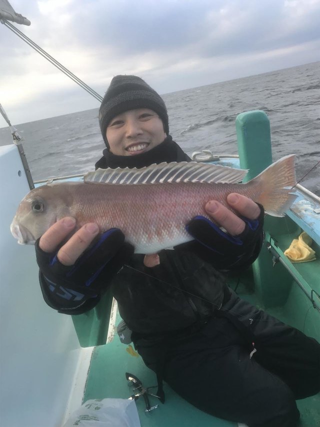 (アカアマダイ)20~48cm 1~5匹 お疲れ様です! 本日は、アマダイ☆ 朝から顔は見れたものの 数伸びず後半、風も吹いてきて 苦戦しましたが最大48cmGET! 寒い中ありがとうございました♪ またのお越しをお待ちしております(^^)