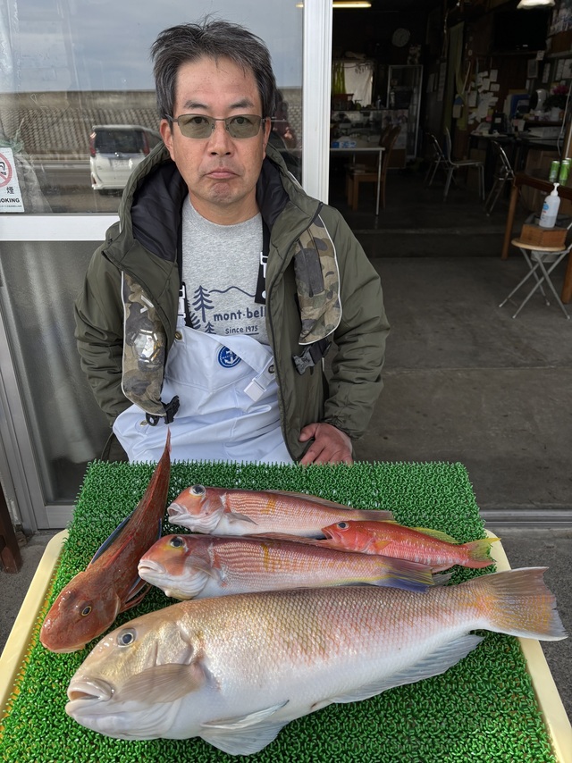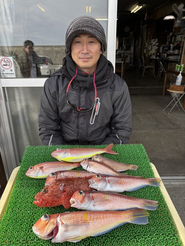 (アカアマダイ)20~33cm 3~6匹 イトヨリ 22~30cm 0~3匹 2024年度の最後の日にご乗船頂きありがとうございました^o^3号船アマダイで出船しました。朝はシロアマ狙いましたが小さいのだけでダメでしたねー(;;)切り替えて深場へ…外道のアタリ多くアカボラ、レンコダイ、オニカサゴ等釣れるが小さいのばかりでアマダイもデカいのが出ませんでした。皆様、良いお年をお迎えください!そして来年も是非お越し下さい♪3号船は2日アマダイ、3日五目で出船します??